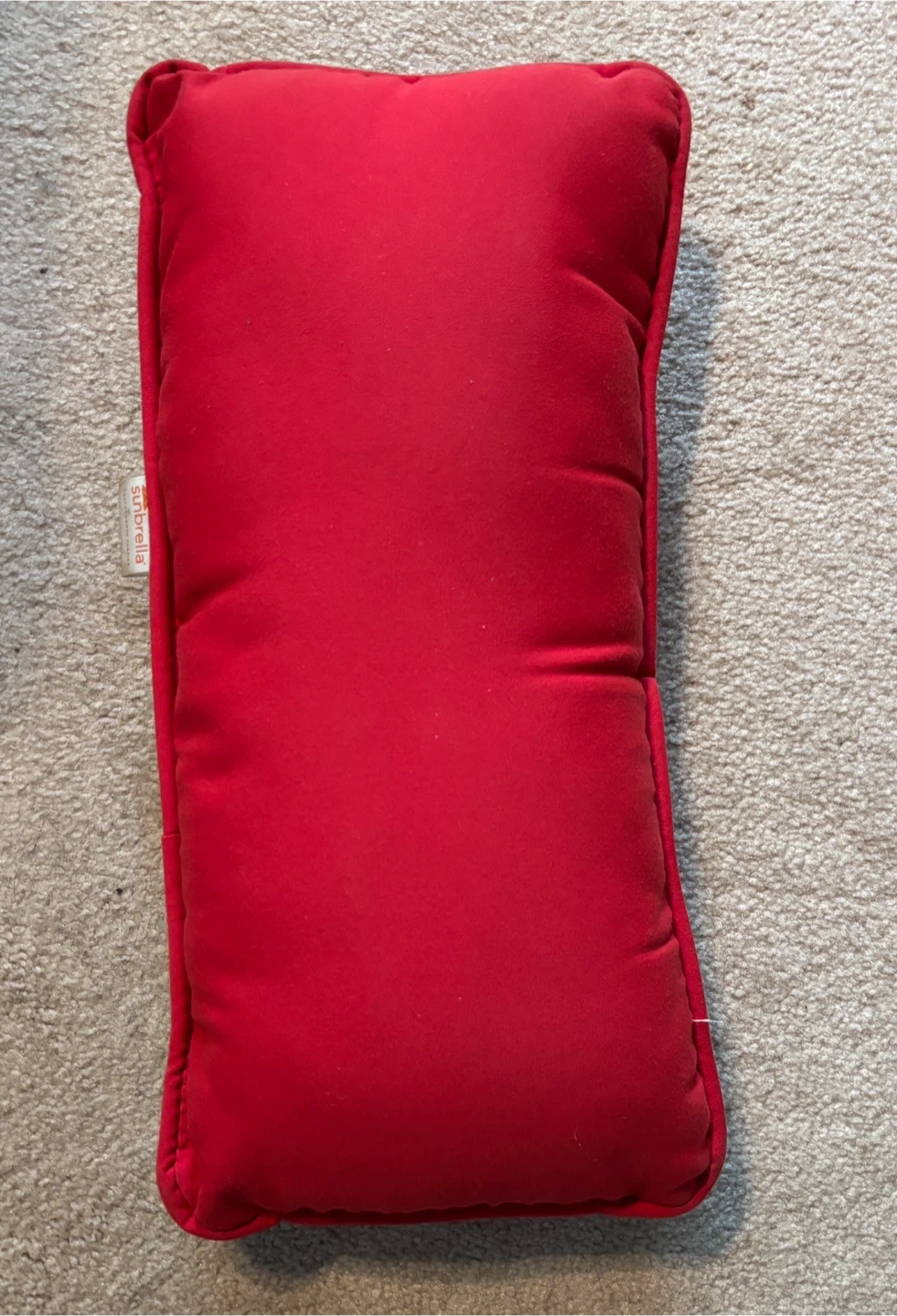 I'm selling a bright red outdoor pillow from Sunbrella. It's in great shape and perfect for adding a pop of colour to your patio furniture or outdoor seating area. Excellent also for lower back support. The fabric is durable and designed to withstand the elements, so it's perfect for outdoor use