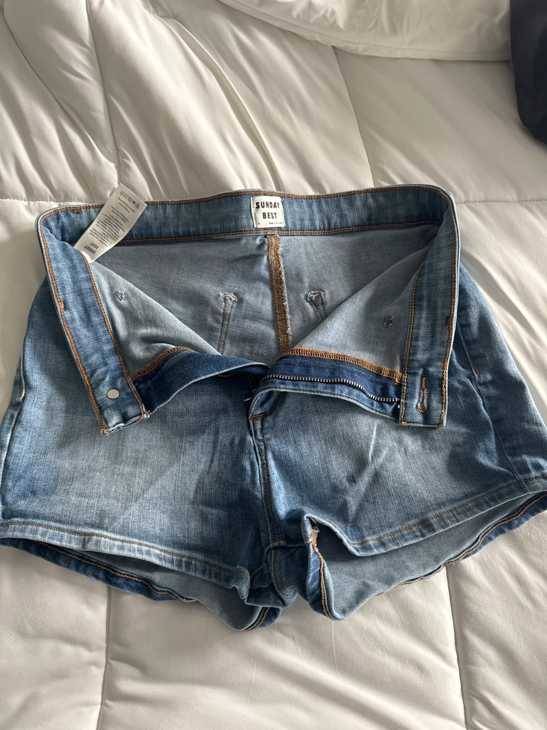 Selling a pair of Sunday Best denim shorts in size 26. They're in great condition and ready for a new home! The denim is a classic light wash, perfect for casual wear. Feel free to ask any questions!