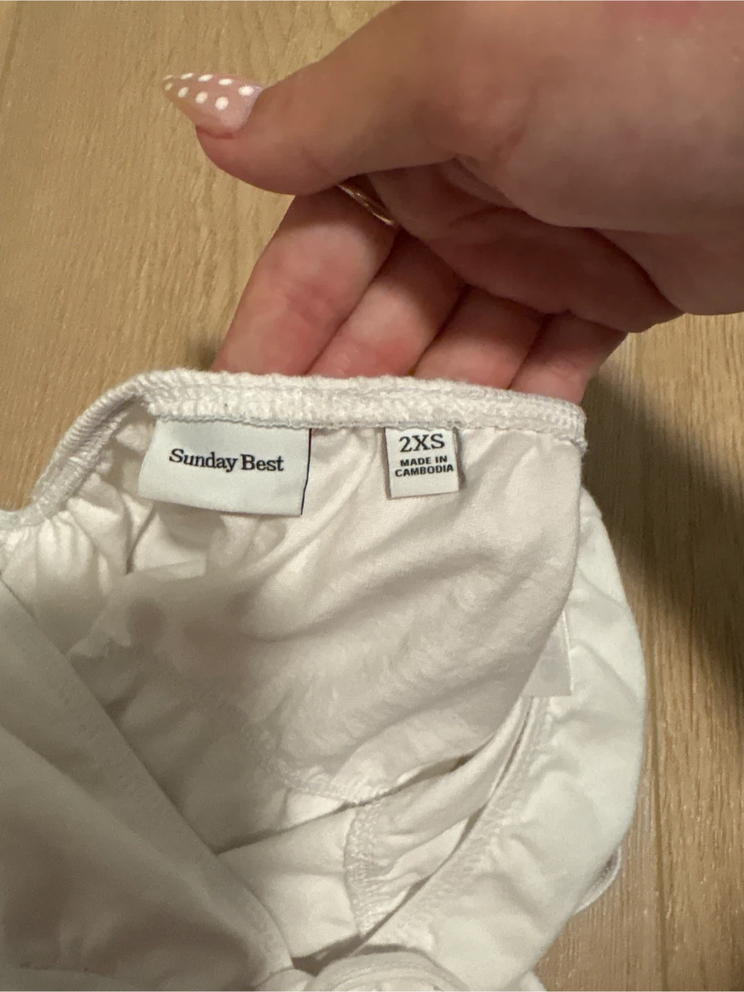 Selling a cute white top from Sunday Best! It's a size 2XS and in great condition. Perfect for a sunny day out or a casual get-together