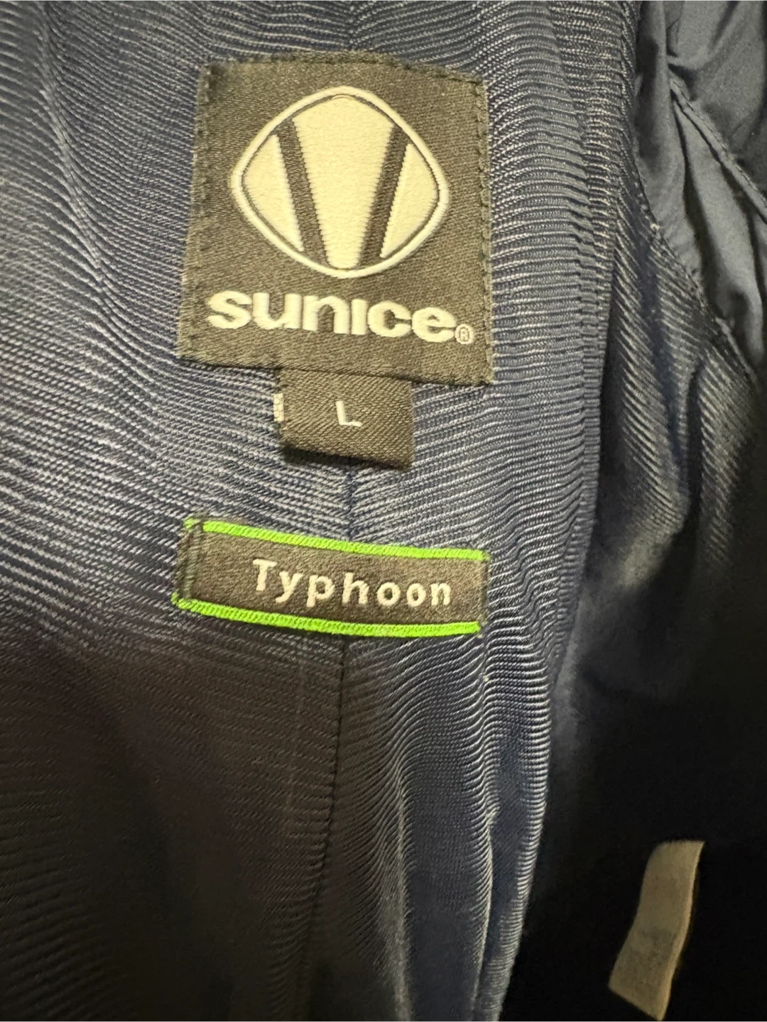 Sunice Typhoon rain pants in size large. They are a navy blue colour and look to be in great shape! Perfect for rainy days or outdoor activities