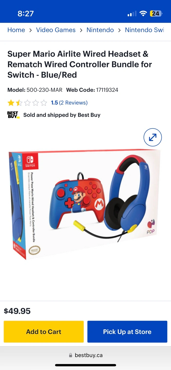 π Christmas Sale - Limited Time Offer!π Super Mario Airlite Wired Headset & Rematch Wired Controller Bundle for Switch - Blue/Red Pick up by appointment only at 4590 Dufferin st, or 175 Hilda Avenue. Call/text : 647-988-1324 or message here Only one available, no holds without payment. --- π Product Details: Immerse yourself in your favourite Nintendo games with the Nintendo Switch Super Mario Airlite wired headset and Rematch wired controller bundle. The headset features soft, padded earcups and a lightweight headband for all-day listening comfort. The controller can be customized with programmable buttons and more to suit your gaming style. - Original Price: $49.95 + HST - Sale Price: $30 NO TAX. - Condition: Brand New π Donβt miss out on this festive deal! Grab yours before itβs gone!