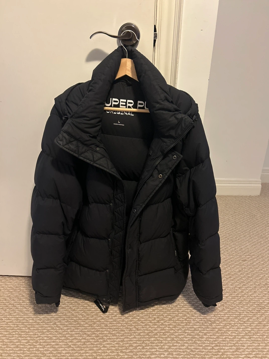 Selling a Super Puff Original puffer jacket in size L. It's a stylish and warm jacket, perfect for the Canadian winter. The jacket is black and in great condition. Feel free to message me with any questions!