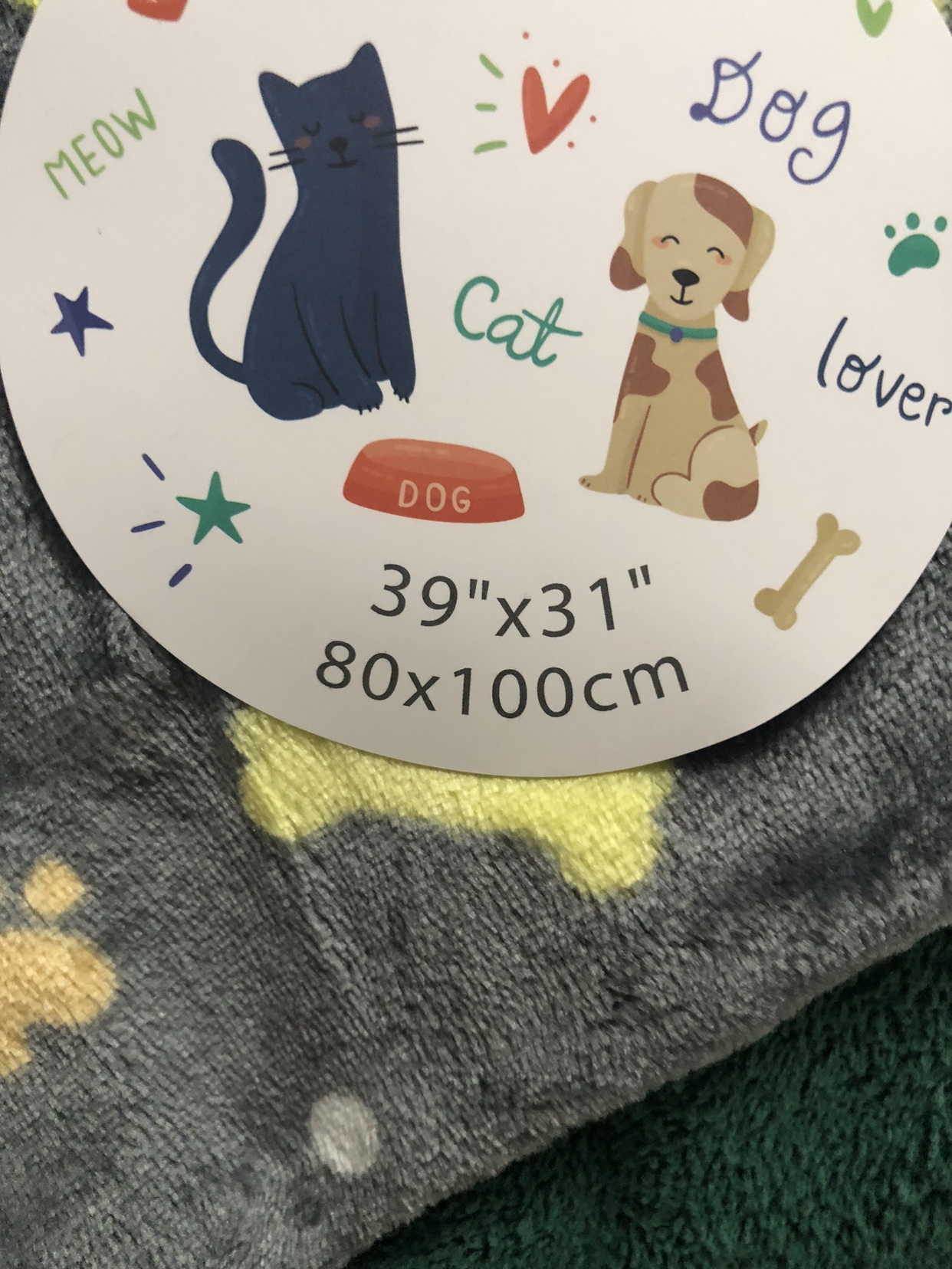 This cute Pet blanket is the perfect blanket for your puppy or cat. So soft, comfortable and lightweight, great for around the house for your pet to play on or place it in your pets car seat carrier for more comfort. Easily compact for traveling while out camping outdoors or in the RV. Your pet will love it! Size: (W31”x L39”)
