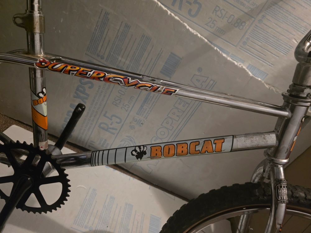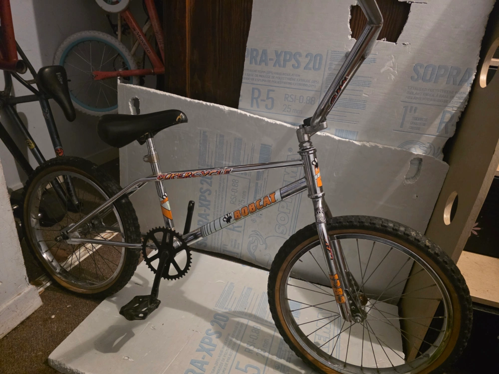 Selling a rare vintage 1986 Supercycle Bobcat BMX bike. It features a chrome finish and classic BMX styling. All orginal part including kickstand. The seat has minor tears in the leather and some of the graphic stickers are damaged. but it a good ride and ultra flashy. ** It will have the chain,grips, brakes and safety reflectors either on or included at pickup
