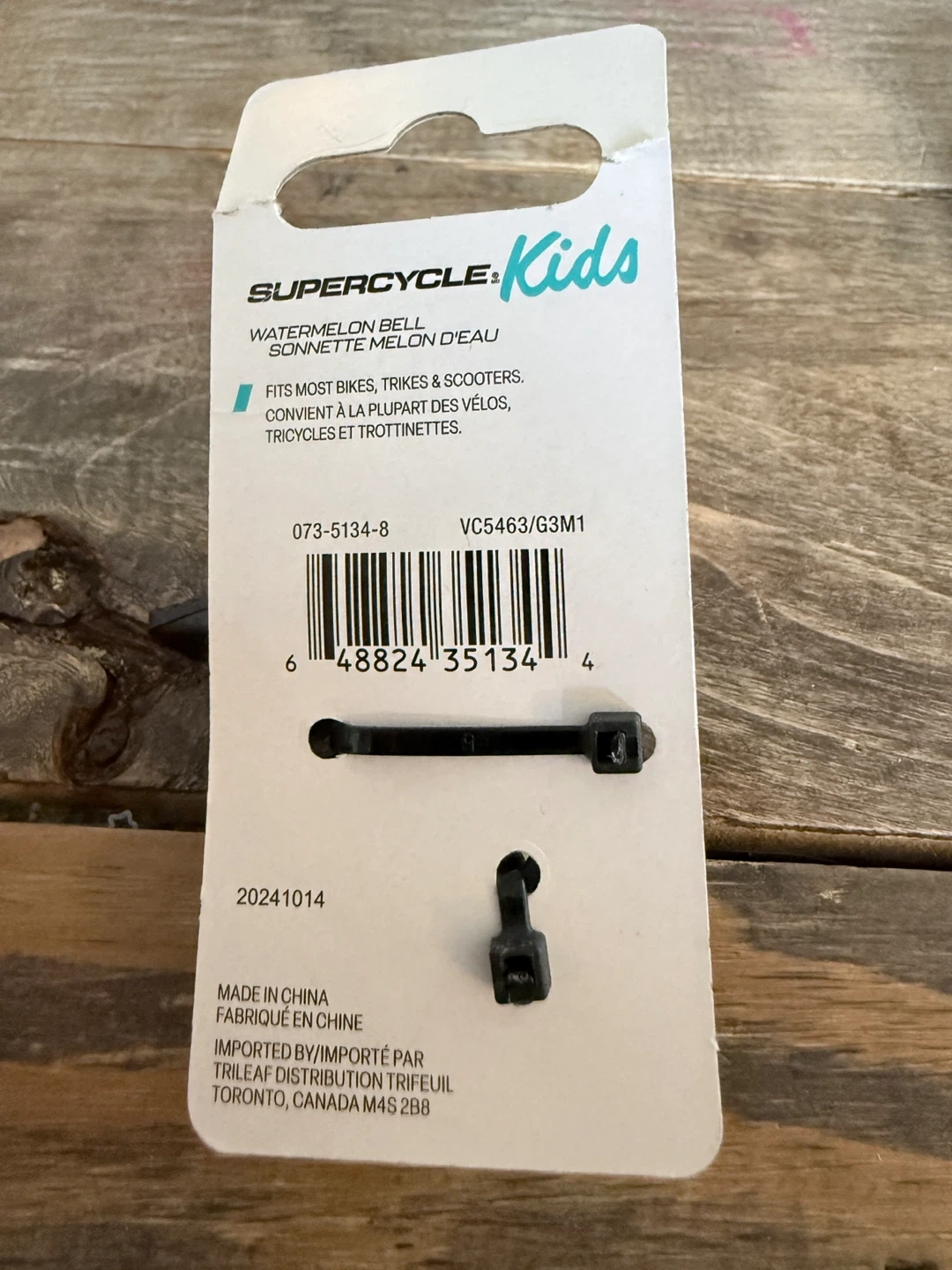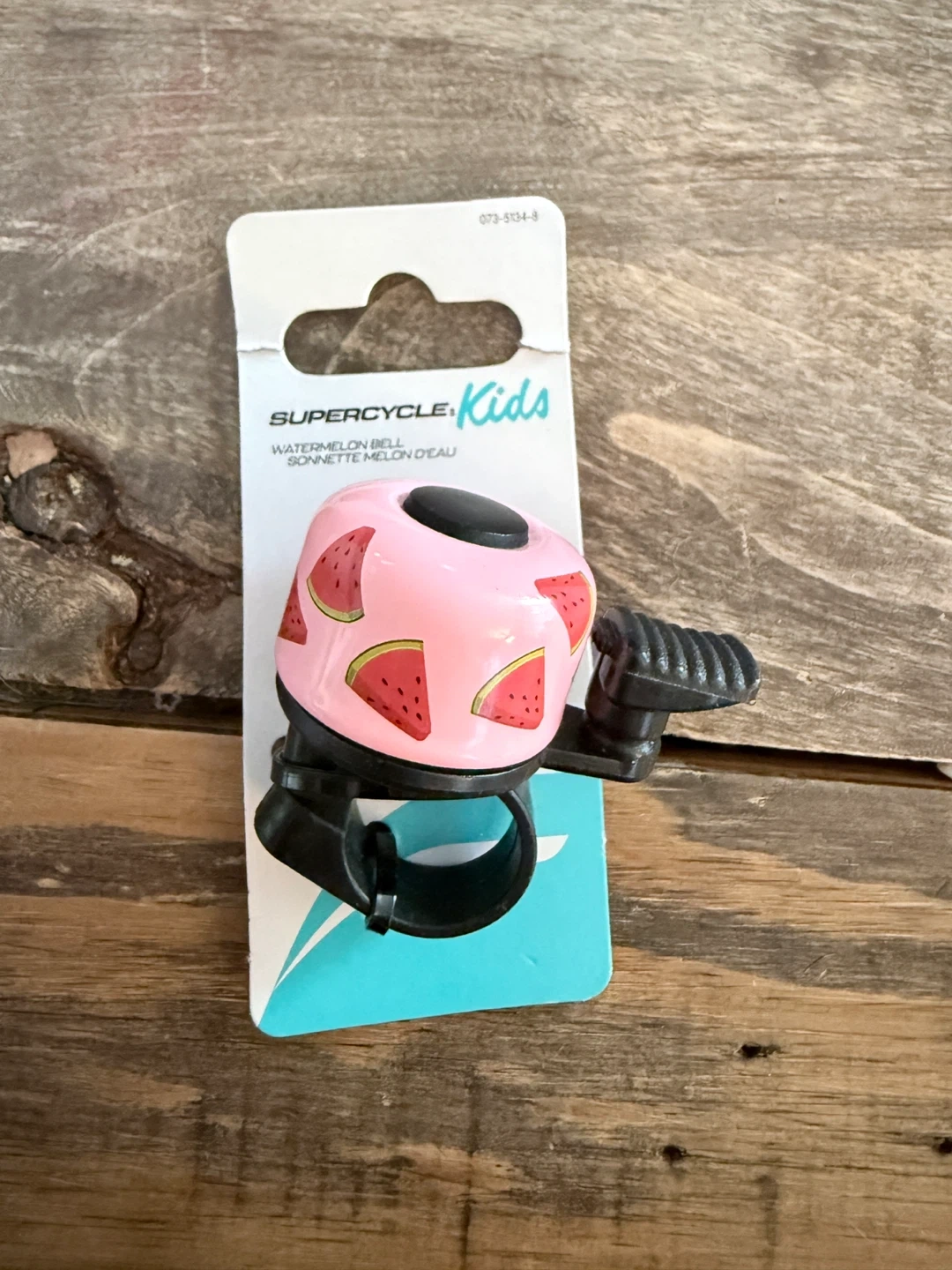 Selling a brand new Supercycle Kids Watermelon Bike Bell. This cute bell fits most bikes, trikes, and scooters. It's pink with a watermelon design, perfect for adding some fun to your kid's ride.