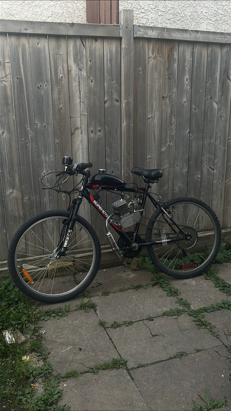 Selling a Supercycle motorized bicycle. This bike has a gas engine attached to the frame. It's a unique ride!