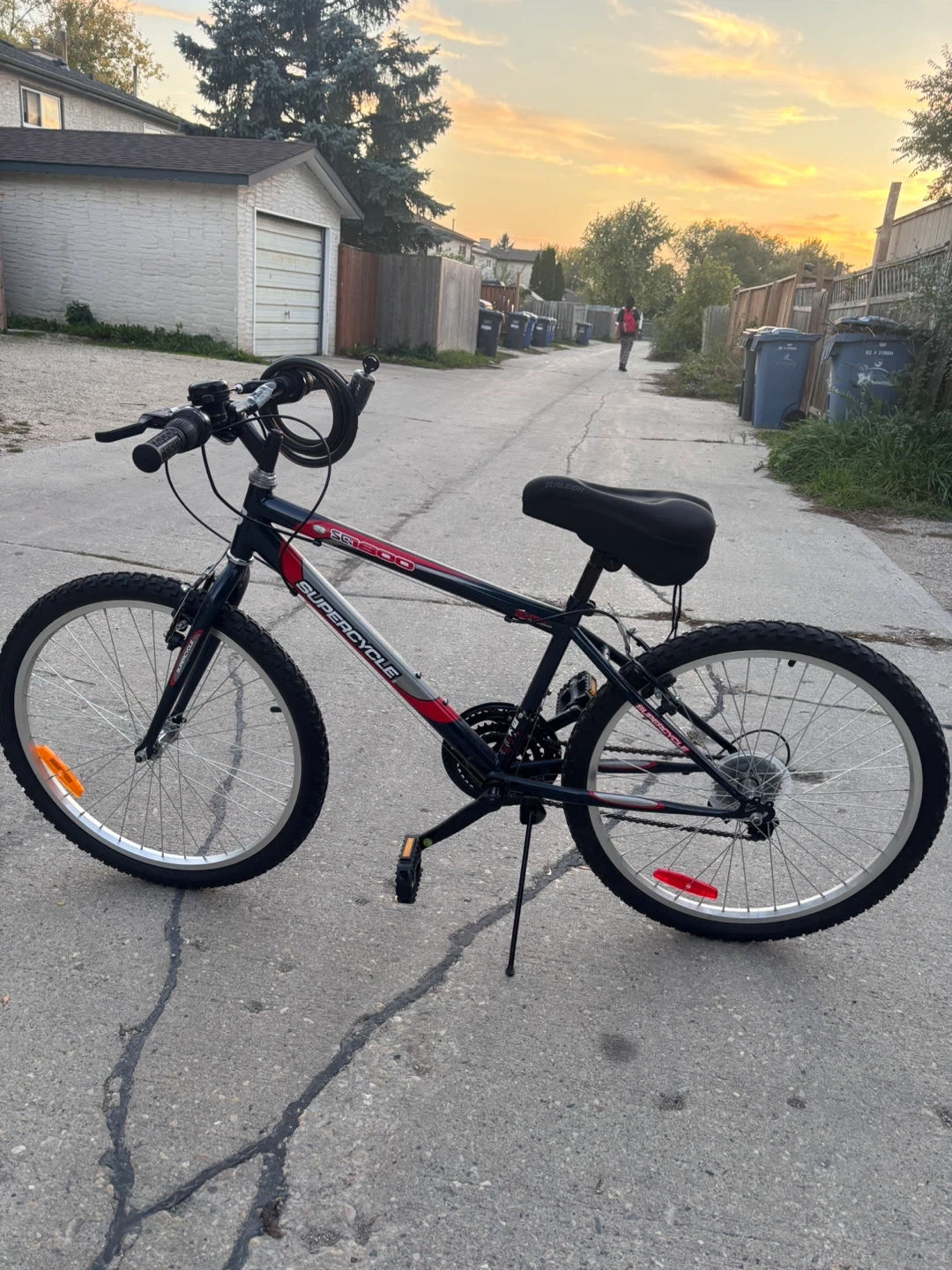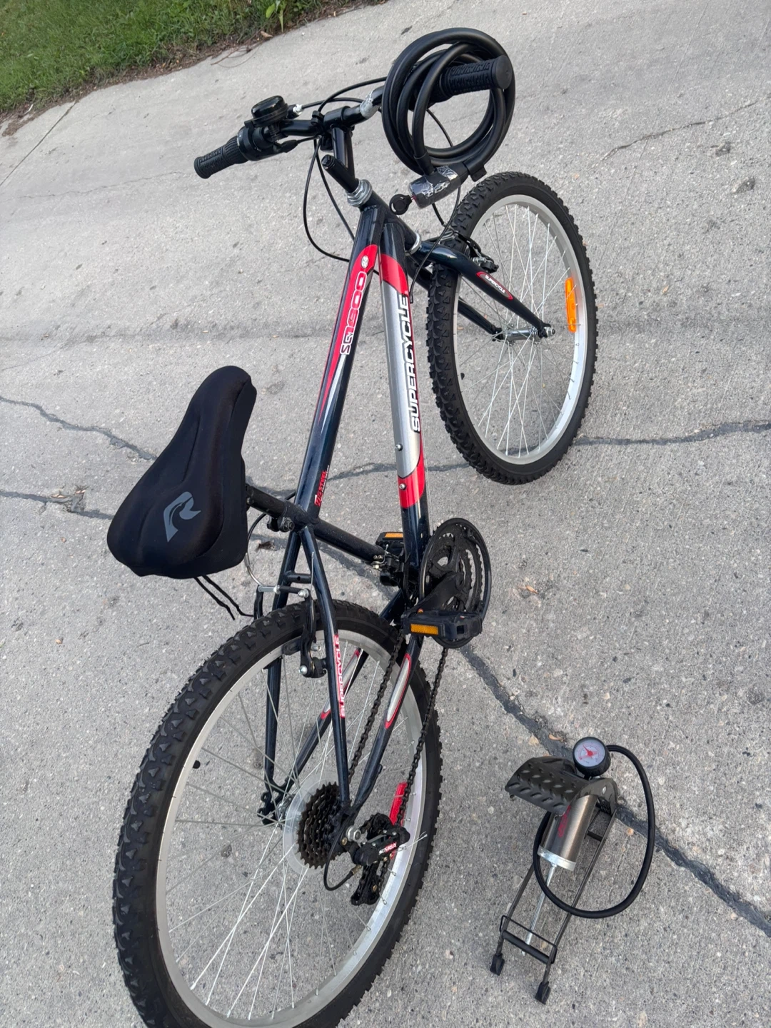 Selling a Supercycle SE 2600 bike! It comes with a handy pump to keep your tires inflated and a lock for security. Ready for some fun rides around town