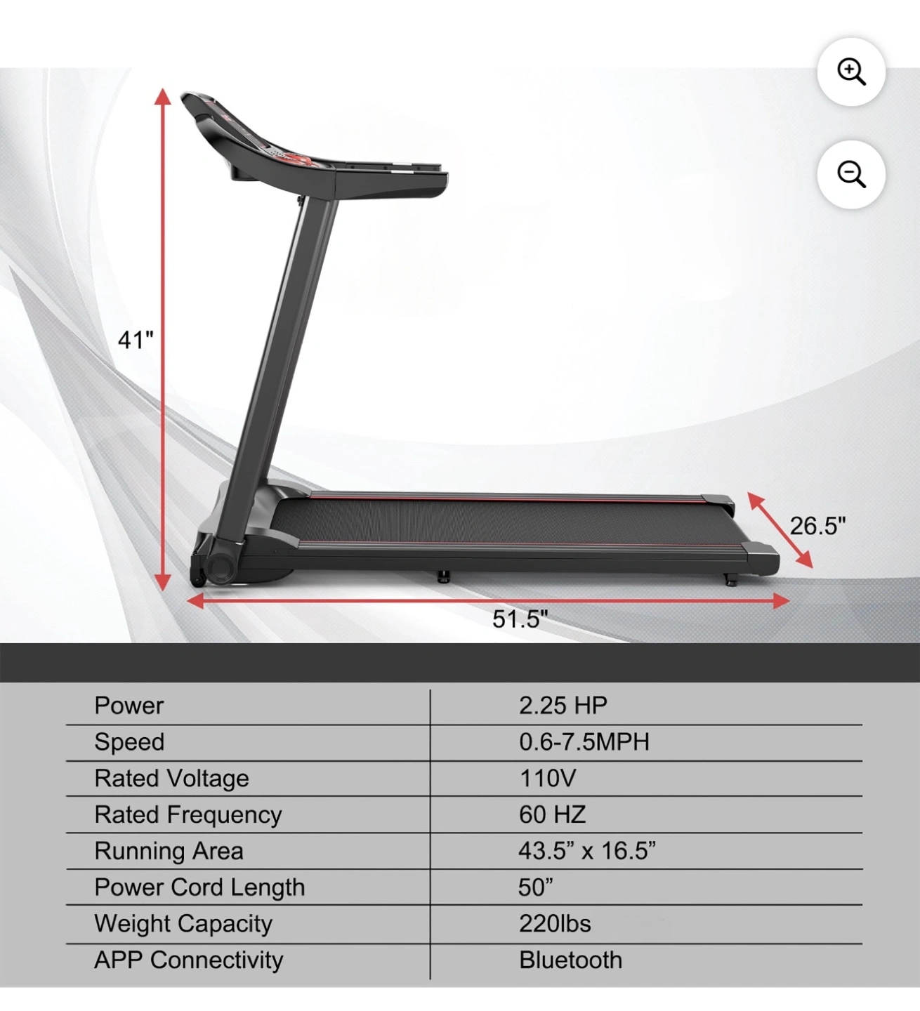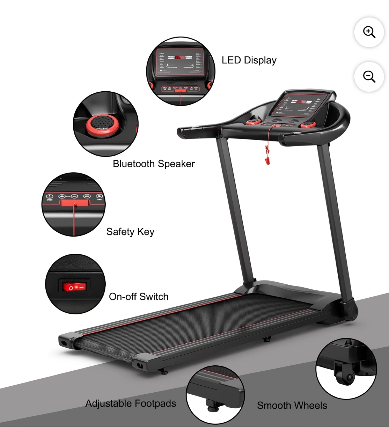 Powerful 2.25HP Motor – Smooth and quiet operation, perfect for home workouts ✅ Bluetooth Speaker – Connect your phone and enjoy music while you run ✅ Smart APP Control – Track your fitness stats and control treadmill functions via app ✅ LED Display – Shows time, speed, distance, and calories burned ✅ Foldable & Space-Saving – Easy to store when not in use
