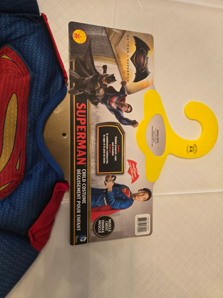 Selling a Superman child costume! It's a size 4 to 6 and looks great for any young superhero in training! Comes with muscle torso and cape!