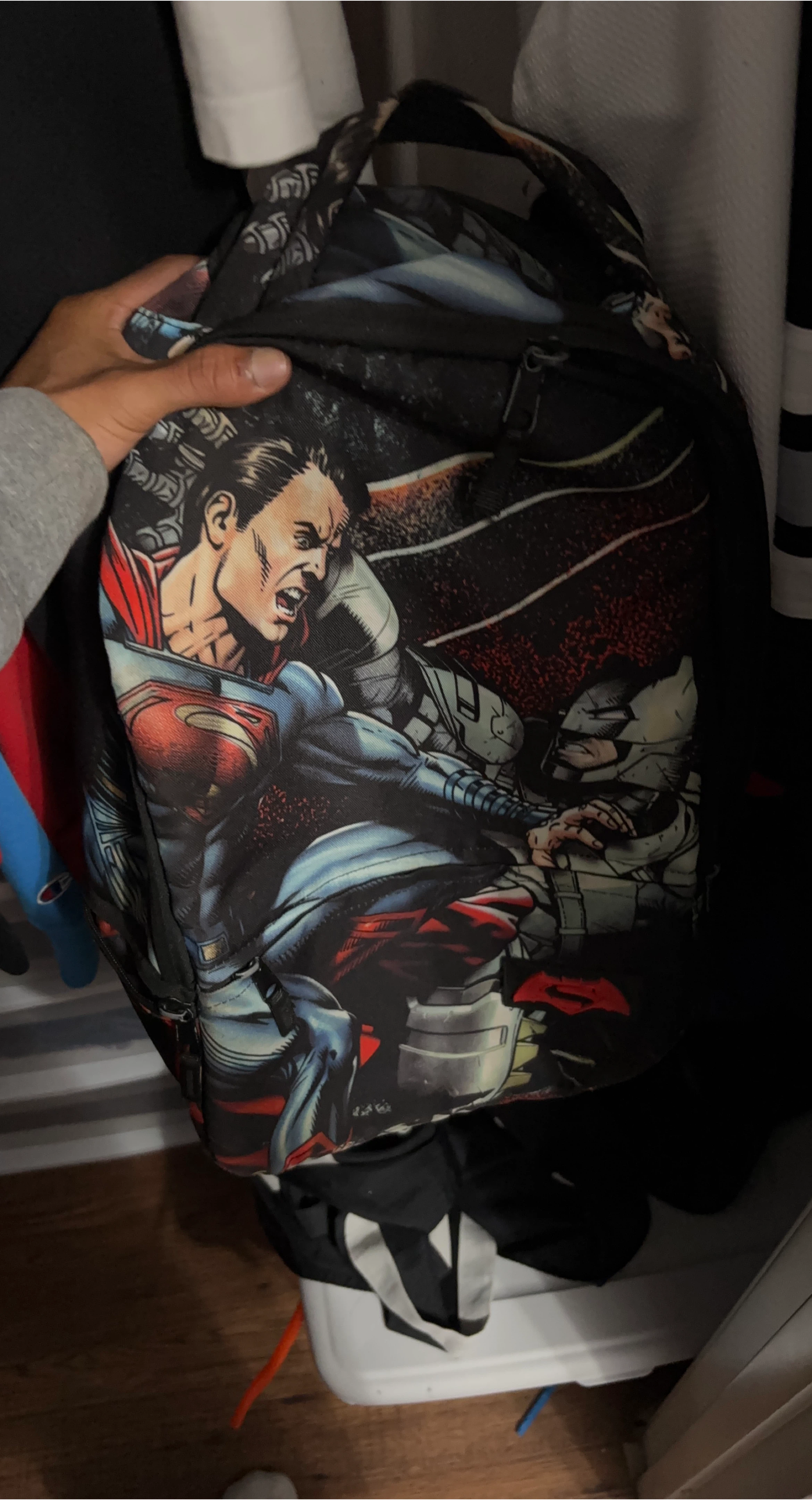 Selling a cool backpack featuring Superman and Batman! It's perfect for carrying your books or other stuff around town
