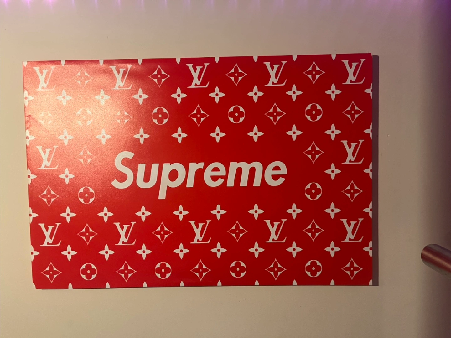 Supreme Louis Vuitton box logo sticker in red. Great for collectors or to add some flair to your belongings!