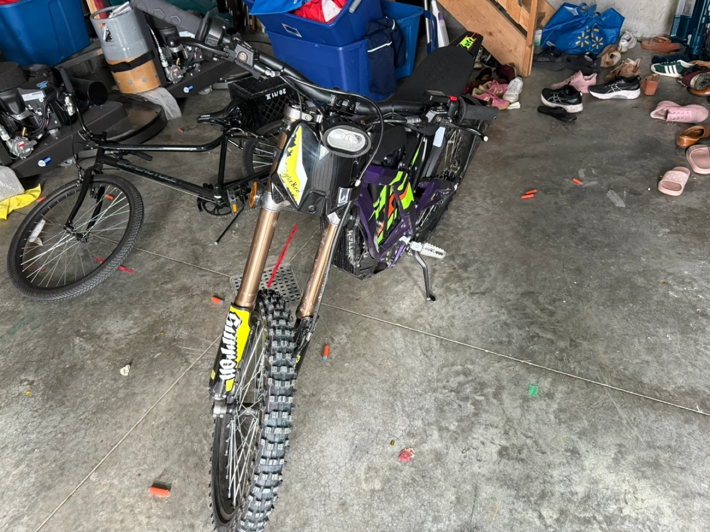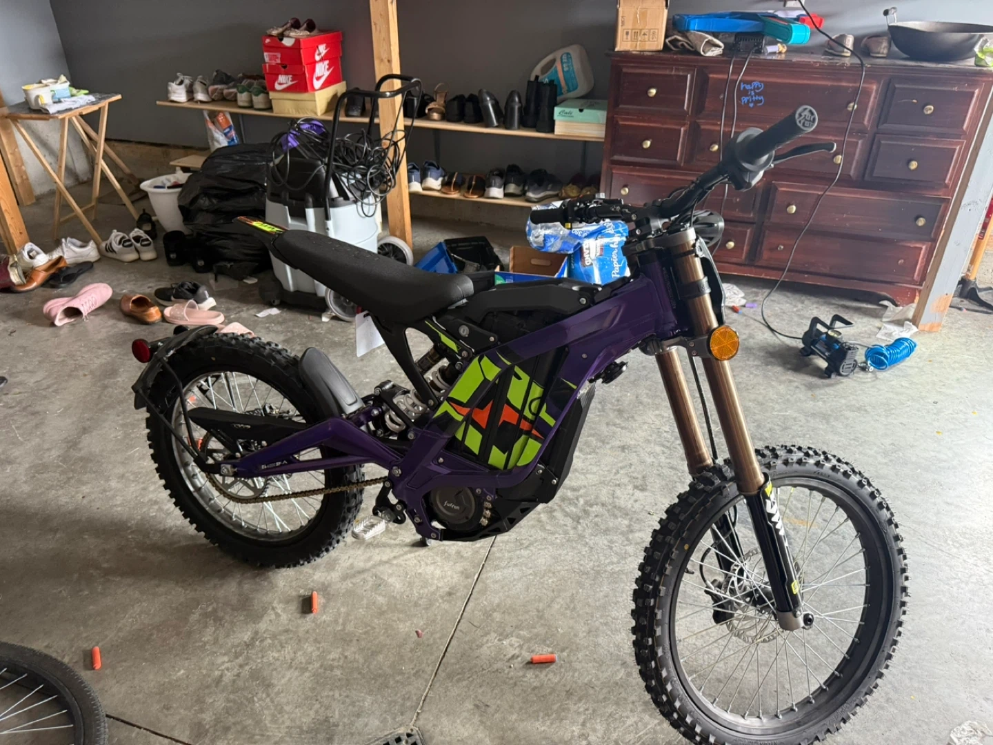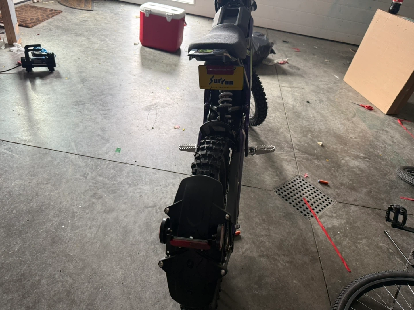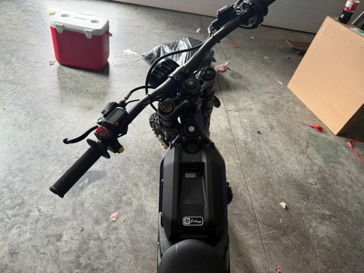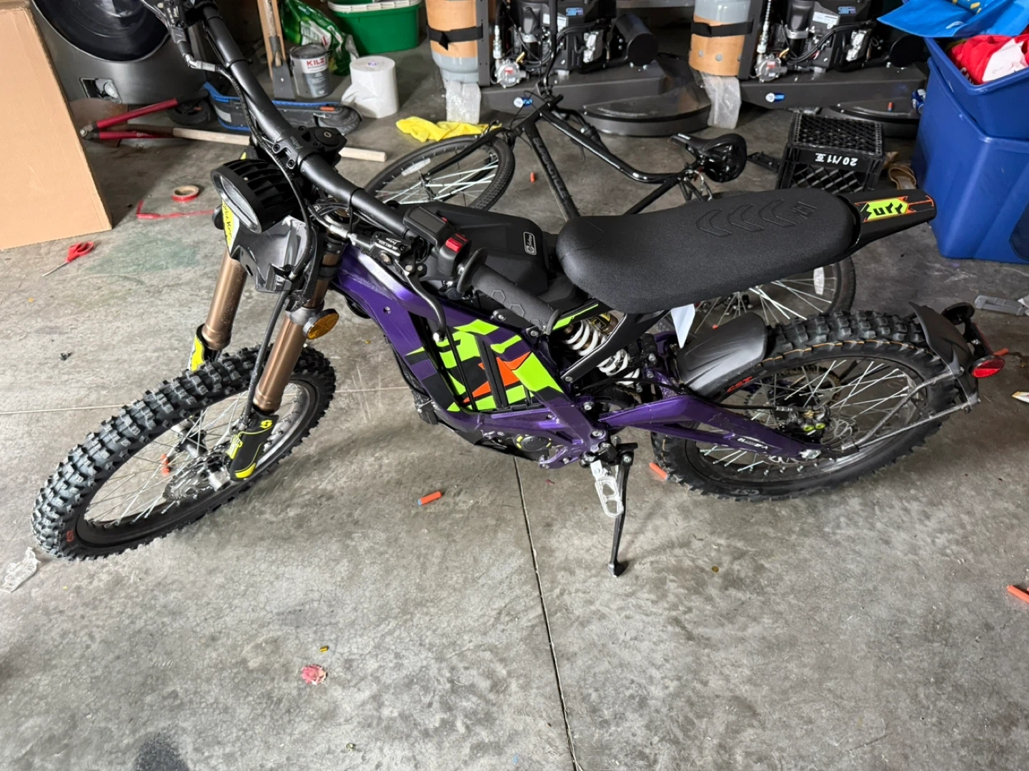 Selling a Surron electric dirt bike. It's in good condition and ready for some off-road fun! This bike is perfect for anyone looking for a thrilling and eco-friendly riding experience. Have some scratch and handle grip is ripped but can be replaced for 20$ that can be removed from the price you pay