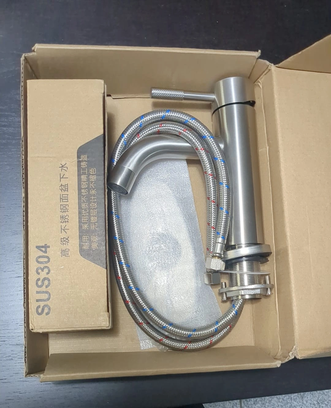 This is a brand new SUS304 stainless steel faucet, perfect for any modern bathroom. It features a sleek design and is made from high-quality materials. * Material: SUS304 Stainless Steel * Finish: Brushed * Installation: Single Hole If the ad is up, it's still available!
