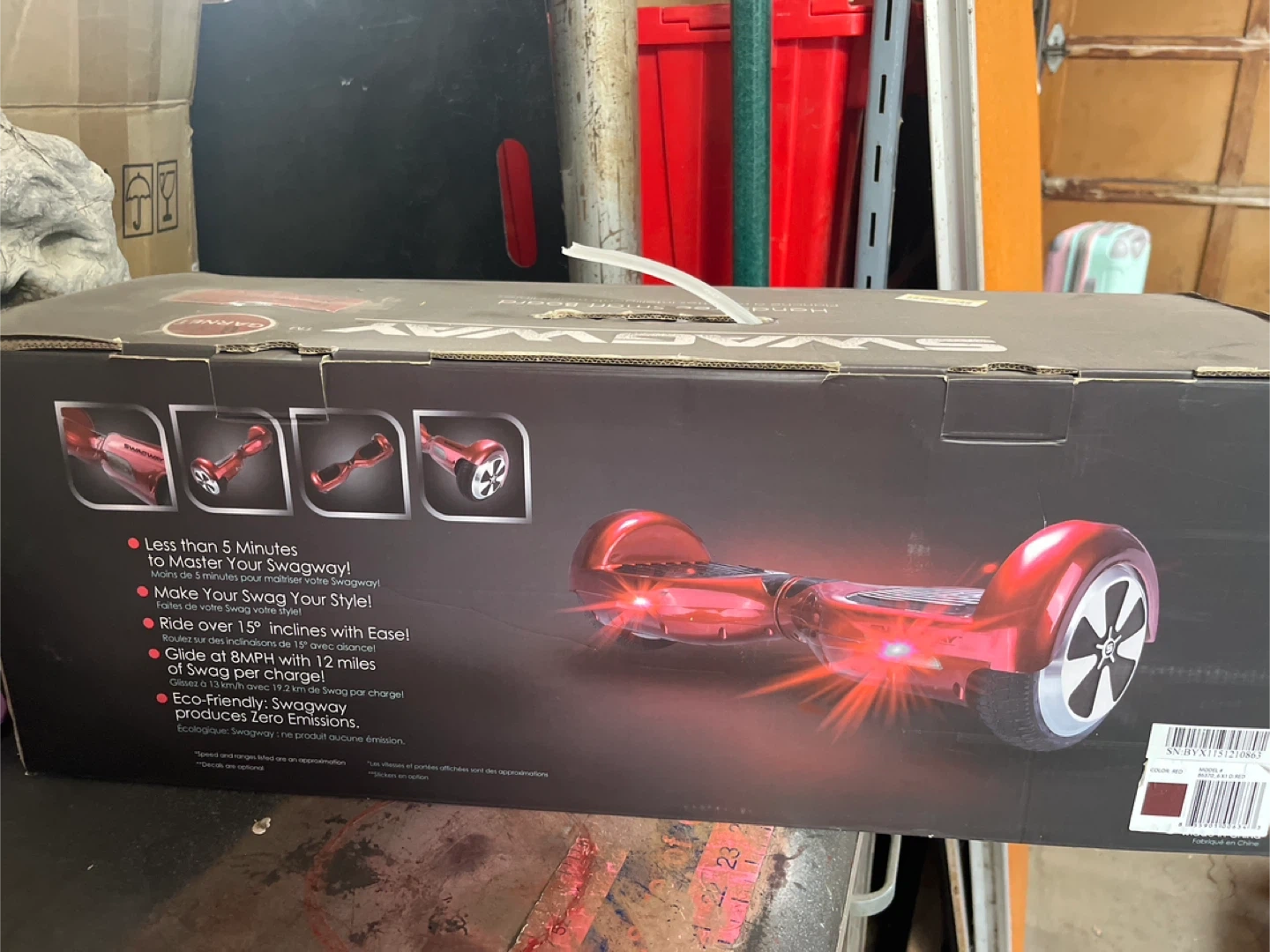 Selling a Swagtron Swagway hands-free smart board in Garnet! It's less than 5 minutes to master your swagway! Make your Swag Style! Ride over 15° inclines with ease! Glides at 8MPH with 12 miles of Swag per charge! It's also eco-friendly, the Swagway produces zero emissions! Box included