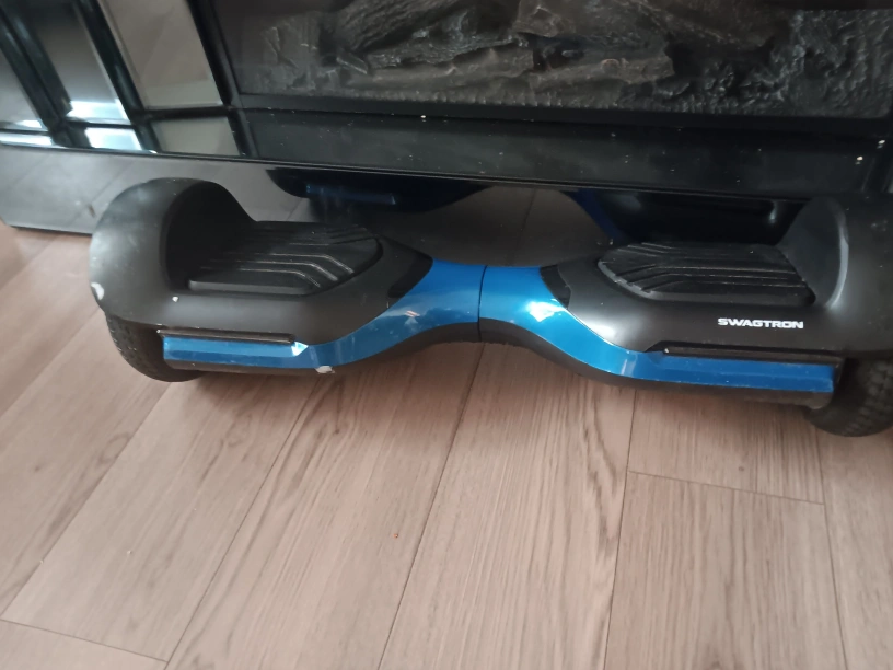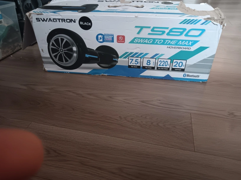 Selling a Swagtron T580 hoverboard in blackand blue. It can handle a max weight of 220 lbs and has a max speed of 7.5 mph. The hoverboard is lightweight and portable, perfect for some fun! (⚠️the charging port fell out but easy to repair it cost like 5$ for the port you can repair it yourself)