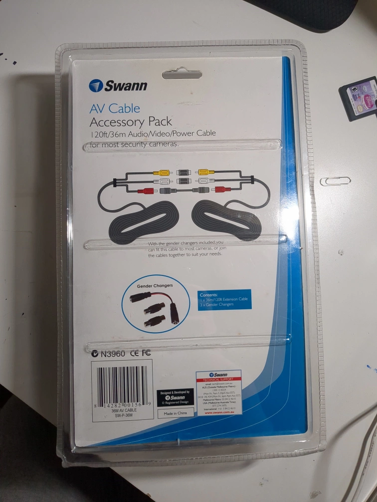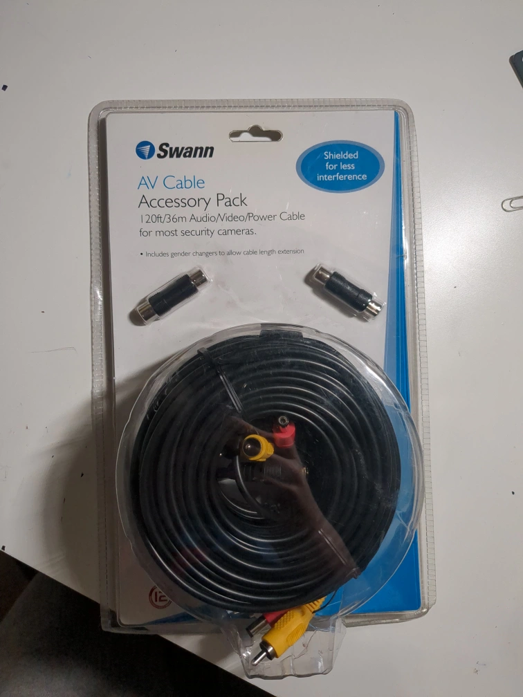 New, sealed Swann AV cable accessory pack. 120ft/36m audio/video/power cable for security cameras.