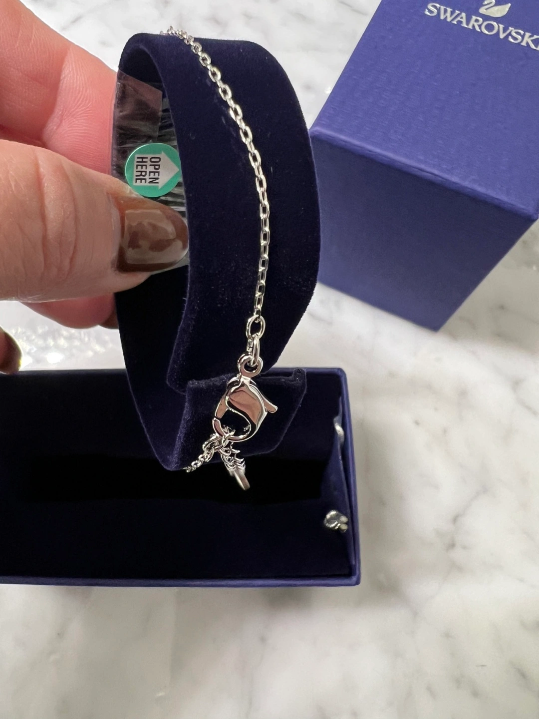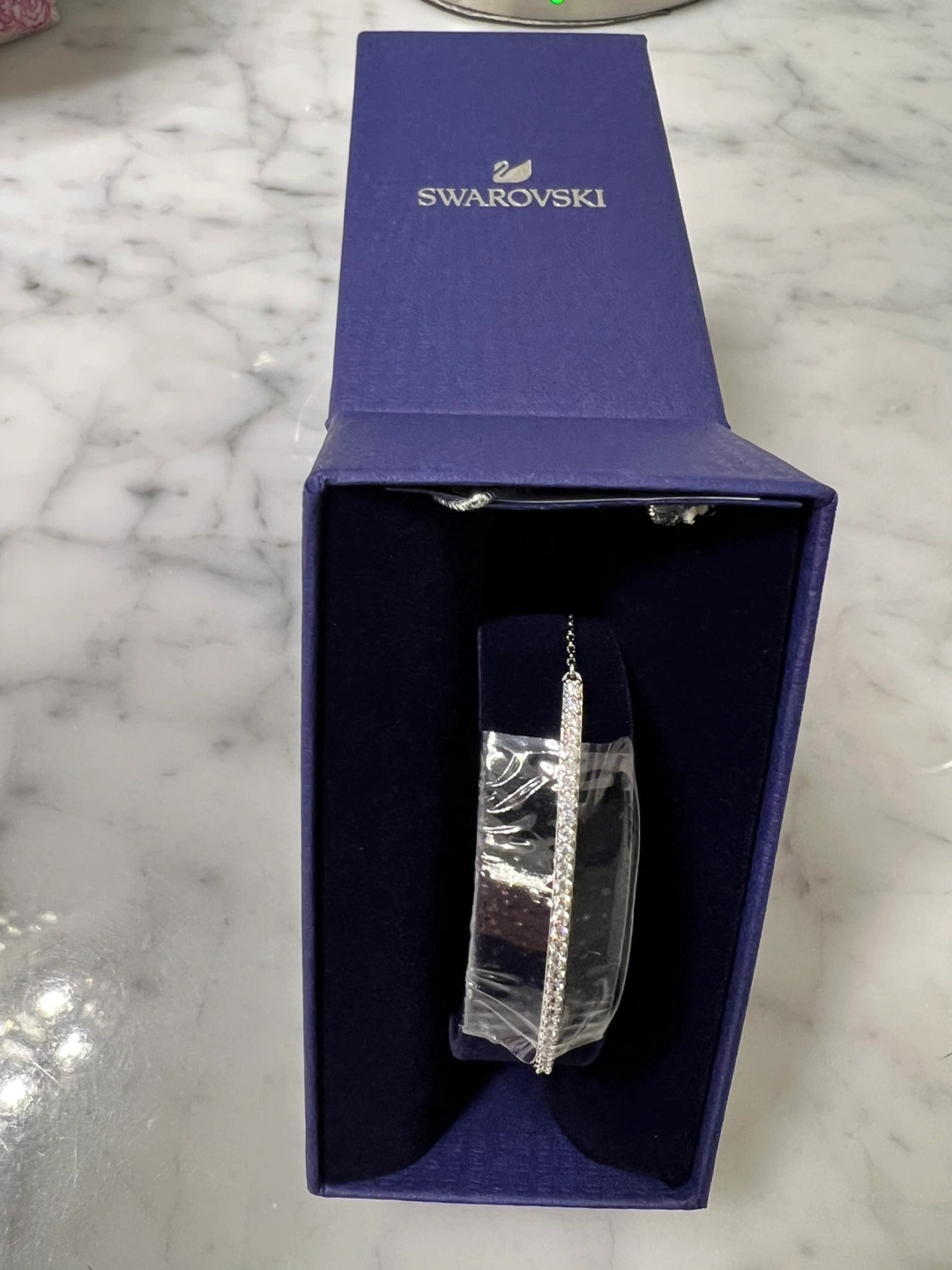 New with tags, comes with original box. Silver tone, crystal bracelet. Brand new in packaging, unworn. Open to offers