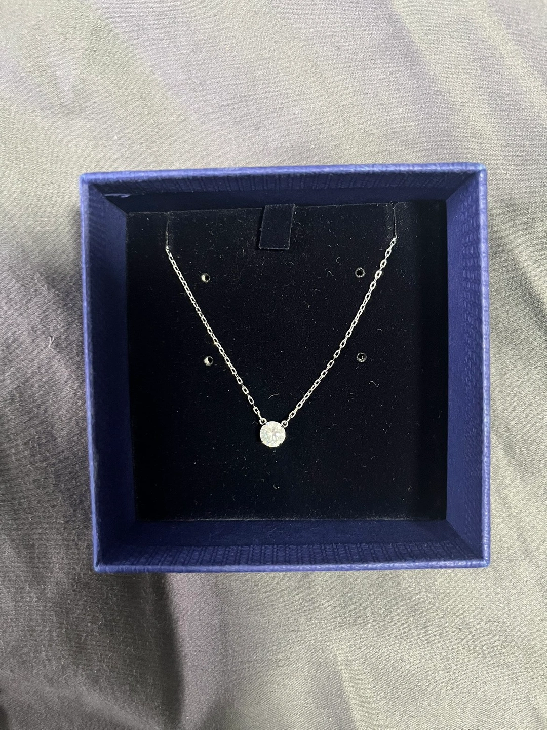Round cut, White, Rhodium plated Length (minimum - maximum): 38 - 42 cm Motif size: 0.7 x 0.7 cm Material: Rhodium plated, Zirconia Colour: White Clasp type: Spring ring Condition: Used once Box is included Retails for $149+tax Chain is adjustable Price is negotiable within reason