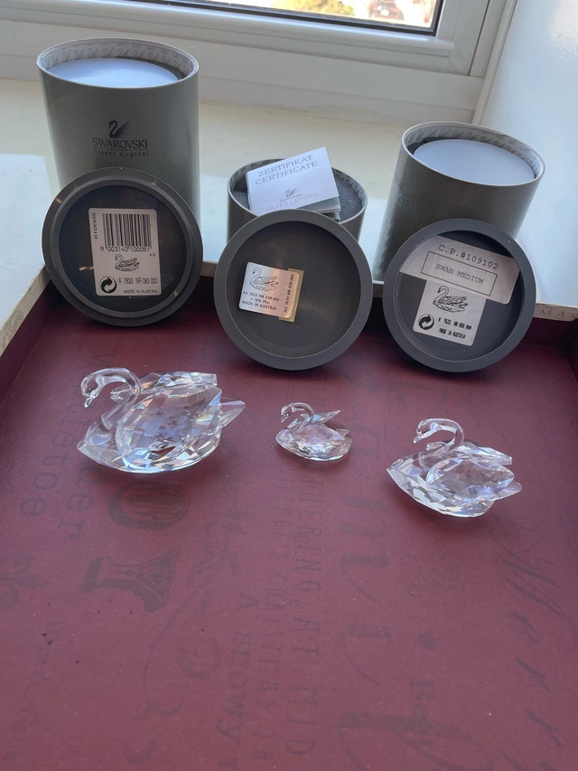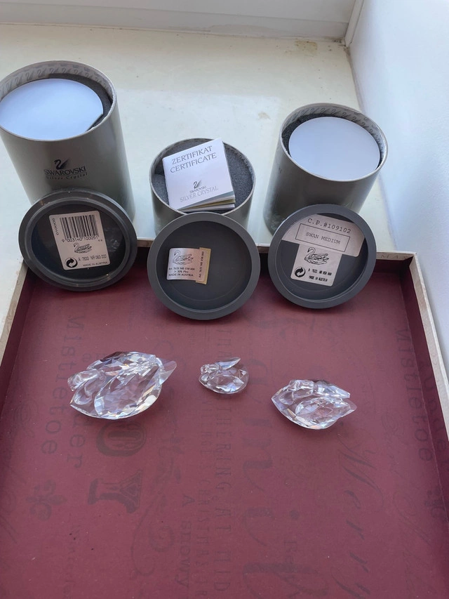 Beautiful Swarovski Crystal trio of swans. Large swan - 010005 Medium swan - 010006 Small swan - 015152 Comes in original boxes from a smoke free home. In excellent condition and has only ever been handled with gloves. Check out my other listings for more Swarovski crystals.