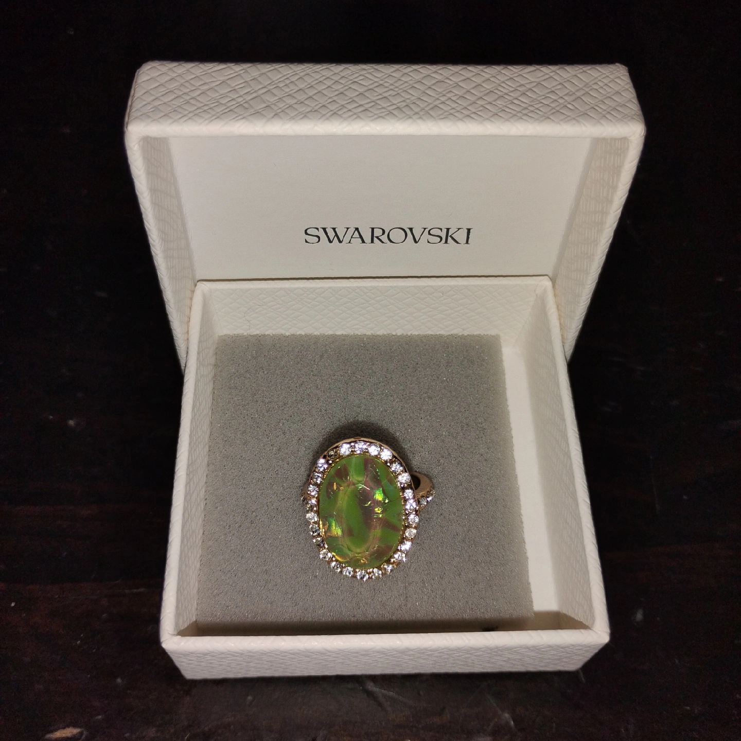 Selling a beautiful Swarovski ring! It features a green oval stone surrounded by crystals. Comes with its original box, making it perfect for gifting or safekeeping