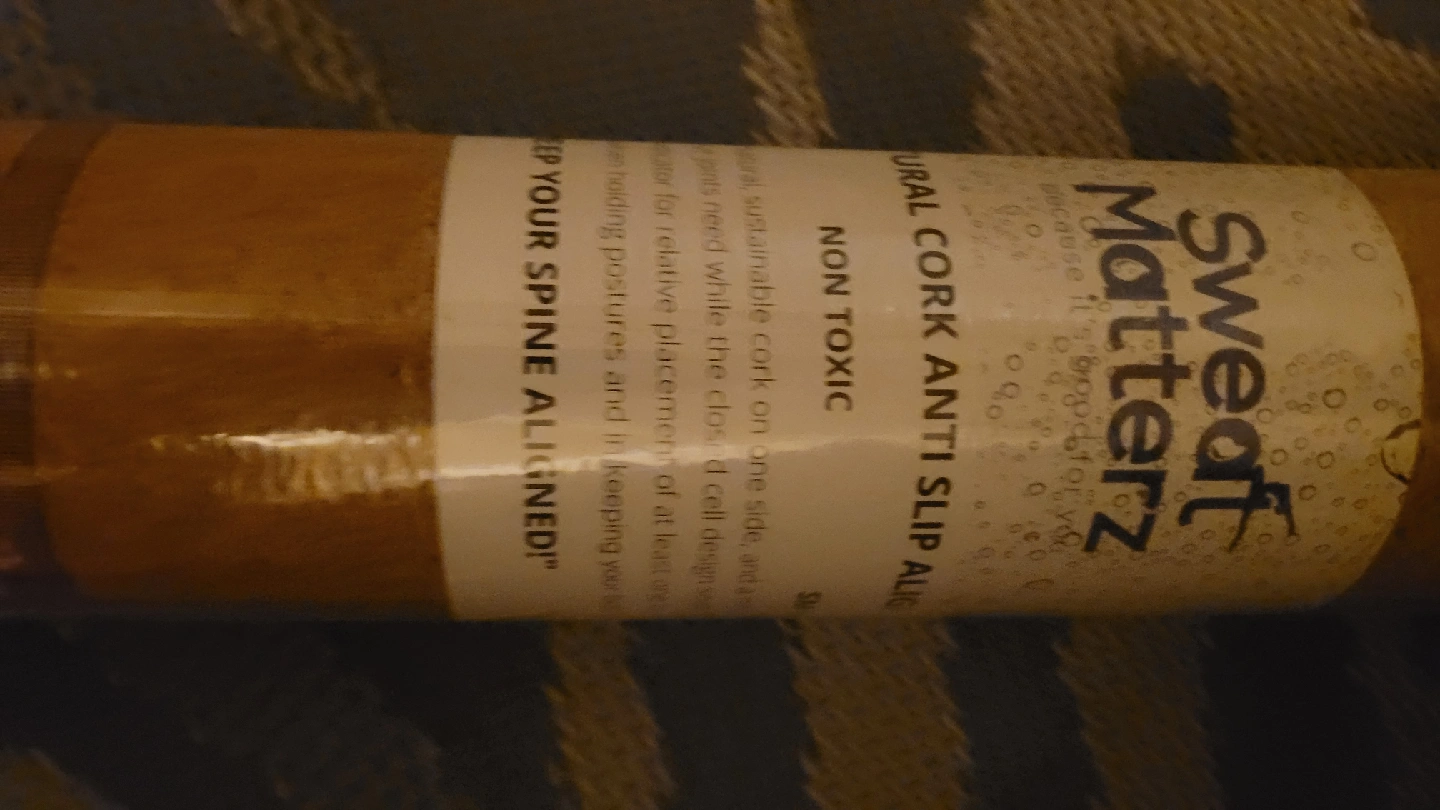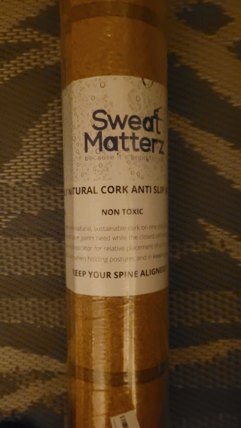 This is a Sweat Matterz yoga mat made with natural, sustainable cork on one side. It's non-toxic and has an anti-slip surface to keep your spine aligned during your practice