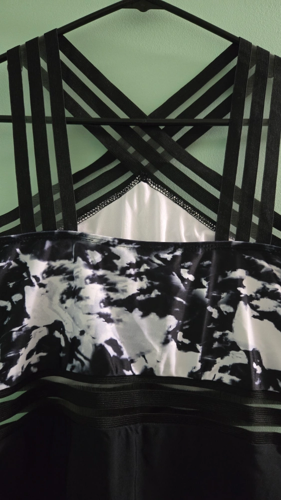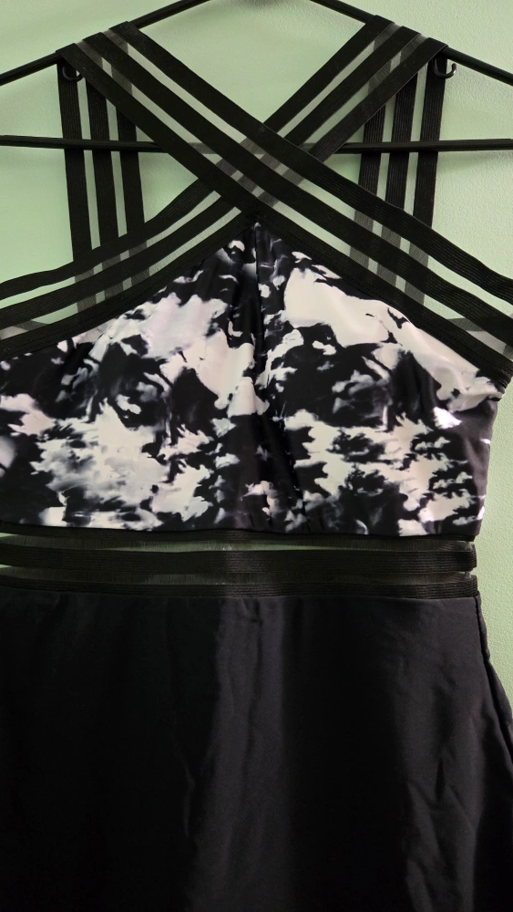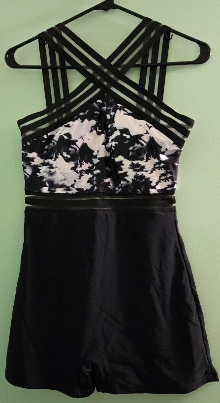 This black and white swimsuit is in excellent condition. It's a stylish one-piece with a unique design. The swimsuit features a flattering cut and comfortable fit, perfect for a day at the beach or pool. Size small If the ad is up, it's available! Grab it before it swims away!