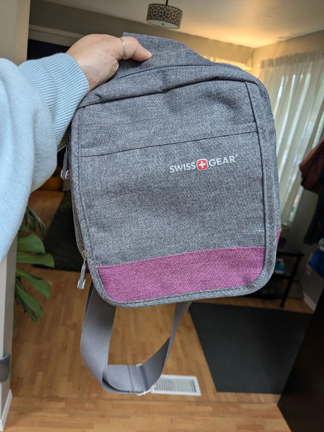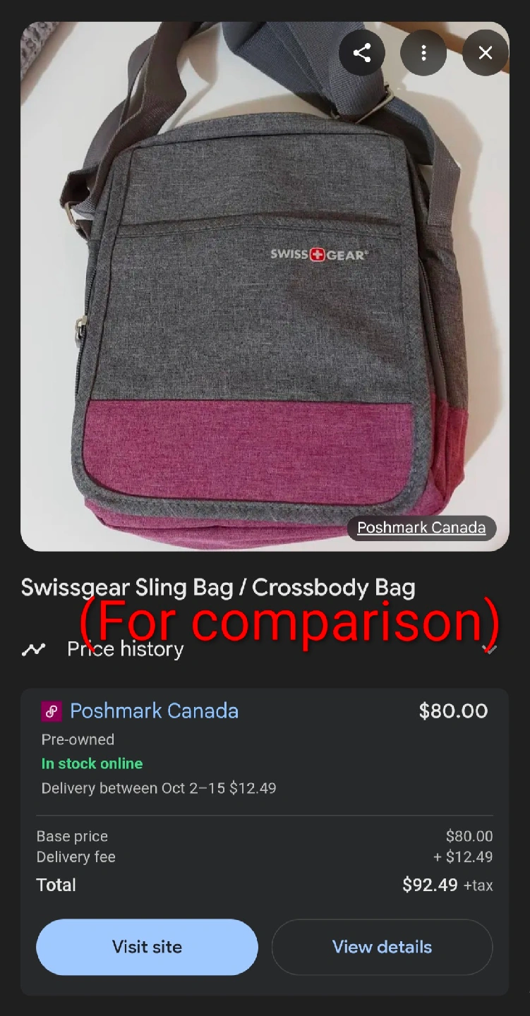 *Only used once, very gently* This Swiss Gear crossbody bag is perfect for quick, convenient, and secure access to your everyday essentials. Ideal for traveling, it features RFID protection to prevent data theft, multiple pockets, and a reinforced bottom for even more durability. The matching one-strap backpack is also available in another listing. Get both for $60! Brand: Swiss Gear Pickup available almost 24/7 (because I work from home) in the Maillardville area of Coquitlam, or we can meet up at a SkyTrain station.