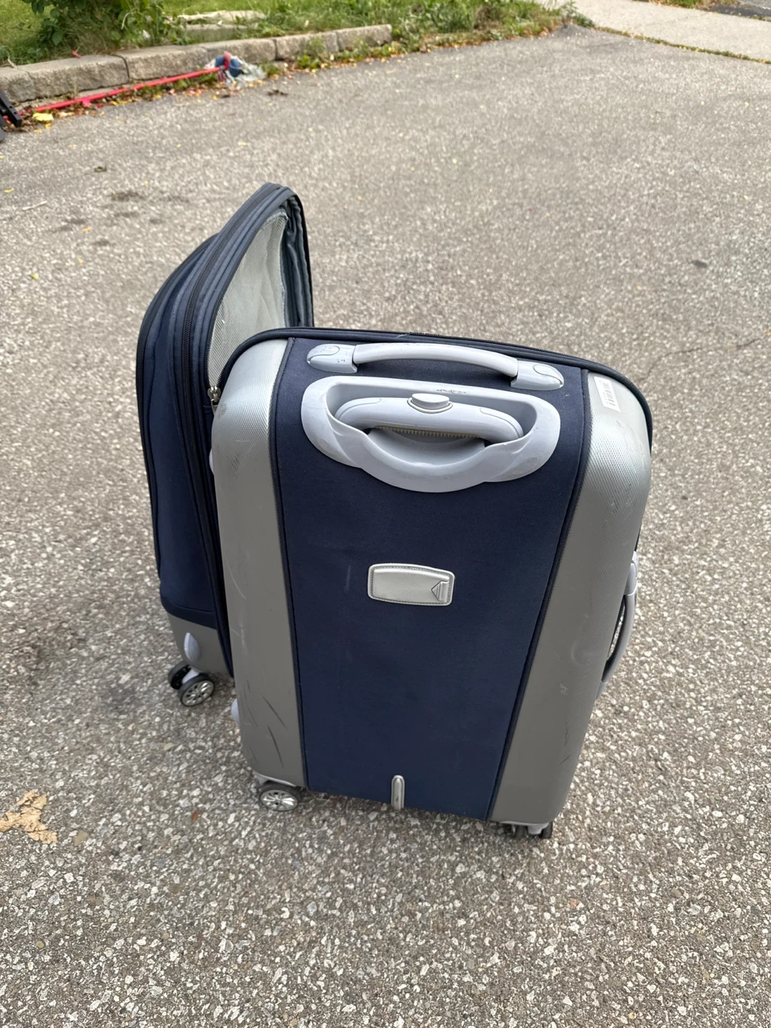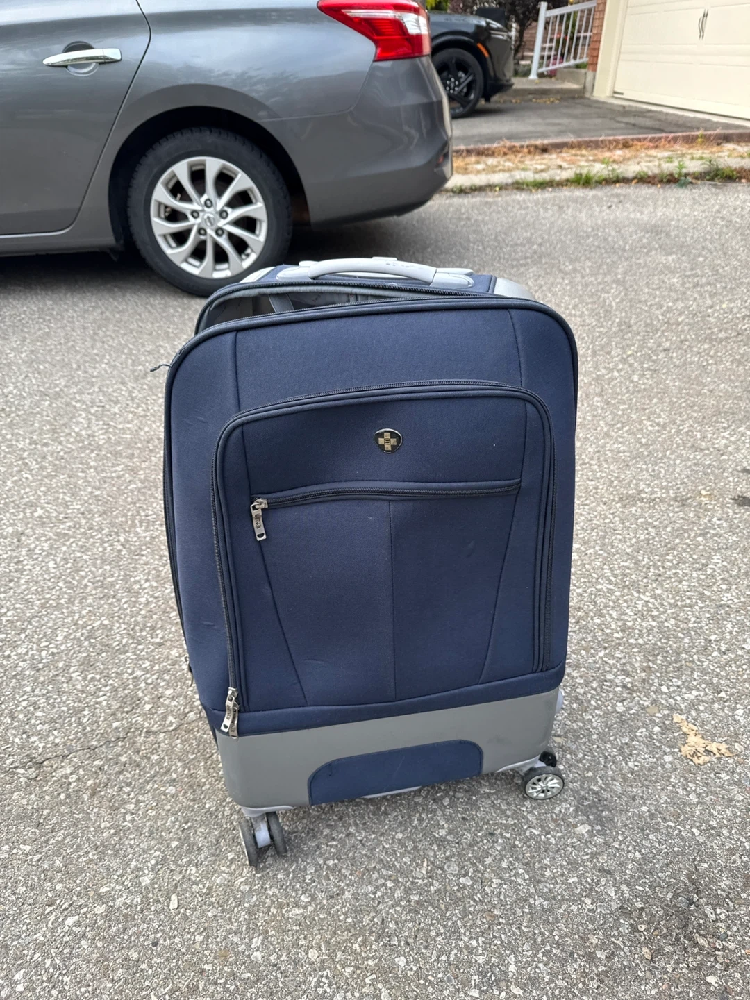 Selling a Swiss Gear carry-on suitcase in great condition! It's a nice navy blue colour with grey trim and has an expandable feature for extra packing space. Perfect for weekend trips or as a carry-on for longer travels