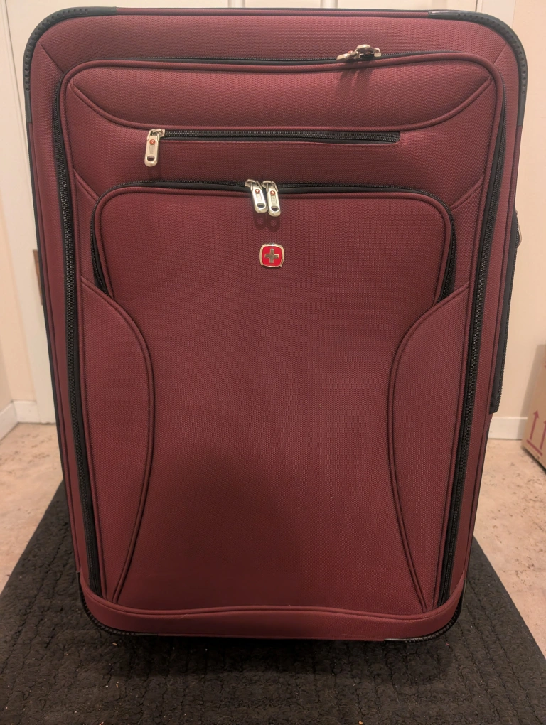 Selling a Swiss Gear expandable suitcase in a lovely burgundy colour. It's in great shape and ready for your next adventure! Very large size and perfect for travel and easy to maneuver.