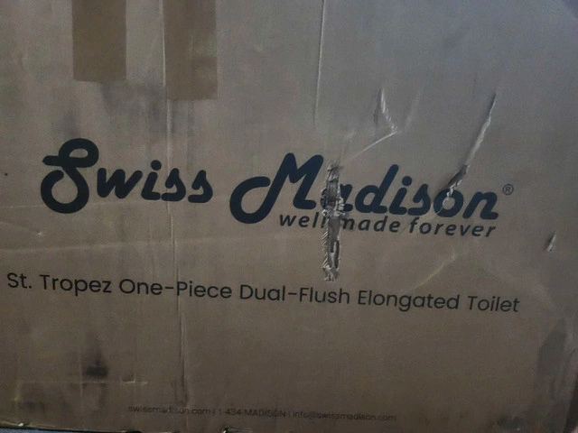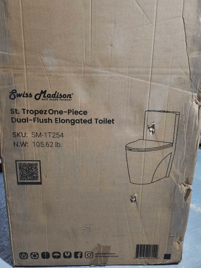 Bring Your Best Offer! This is a brand new Swiss Madison St. Tropez One-Piece Dual-Flush Elongated Toilet, model SM-1T254, ensuring modern design and water efficiency for your bathroom. It combines style with functionality, featuring a sleek, one-piece construction and an elongated bowl for added comfort. The dual-flush system offers water conservation without compromising performance. It is still in its original packaging and comes with all the necessary components for installation. Key Features: * Brand: Swiss Madison * Model: SM-1T254 * Type: One-Piece, Elongated * Flush: Dual-Flush