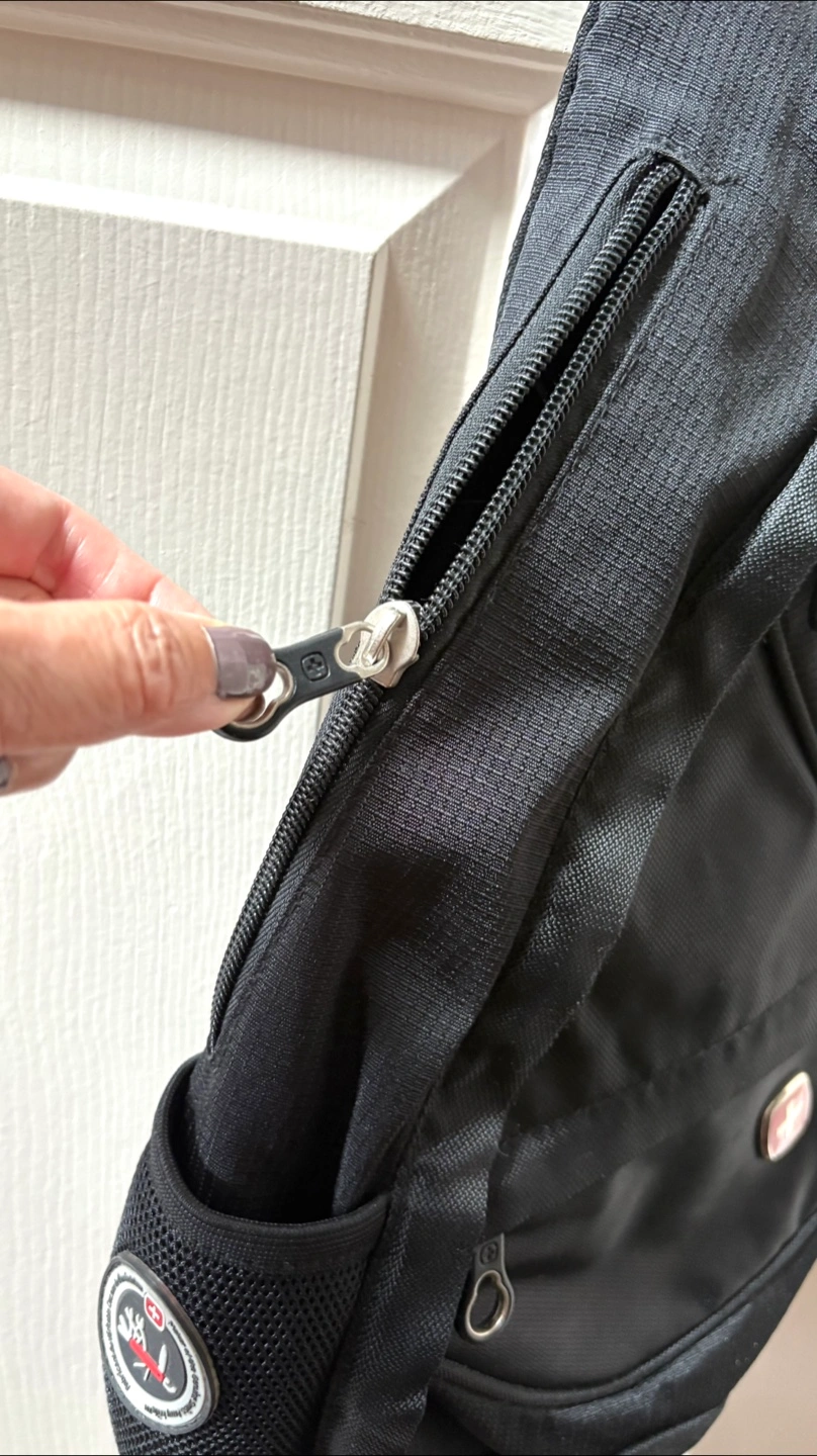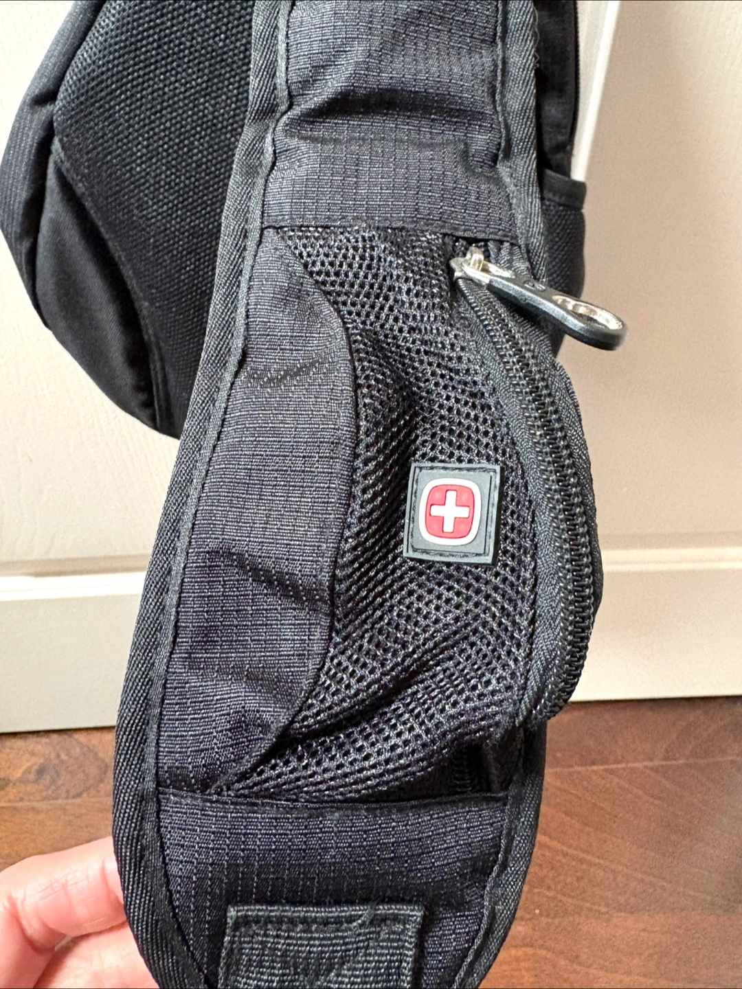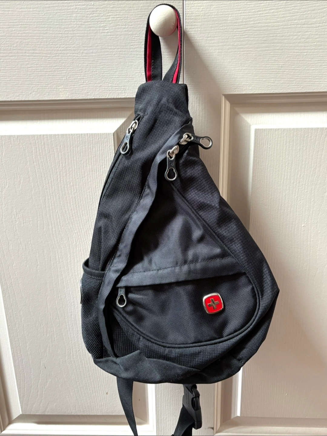 Looking to sell my SwissGear sling bag! It's in great shape and perfect for carrying your essentials. It's black and has a few different zippered compartments for organization. 16” long 11” wide