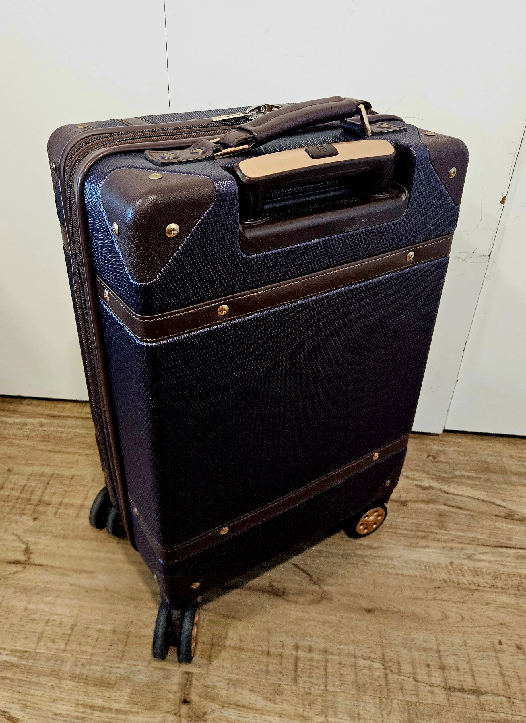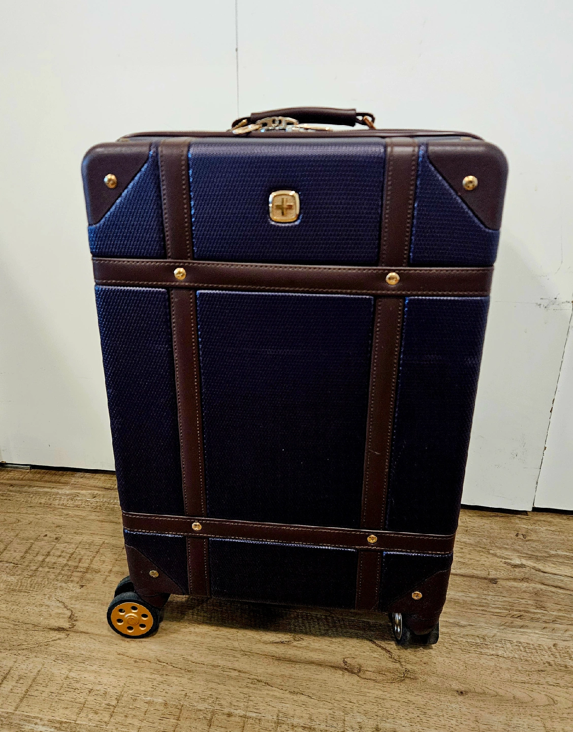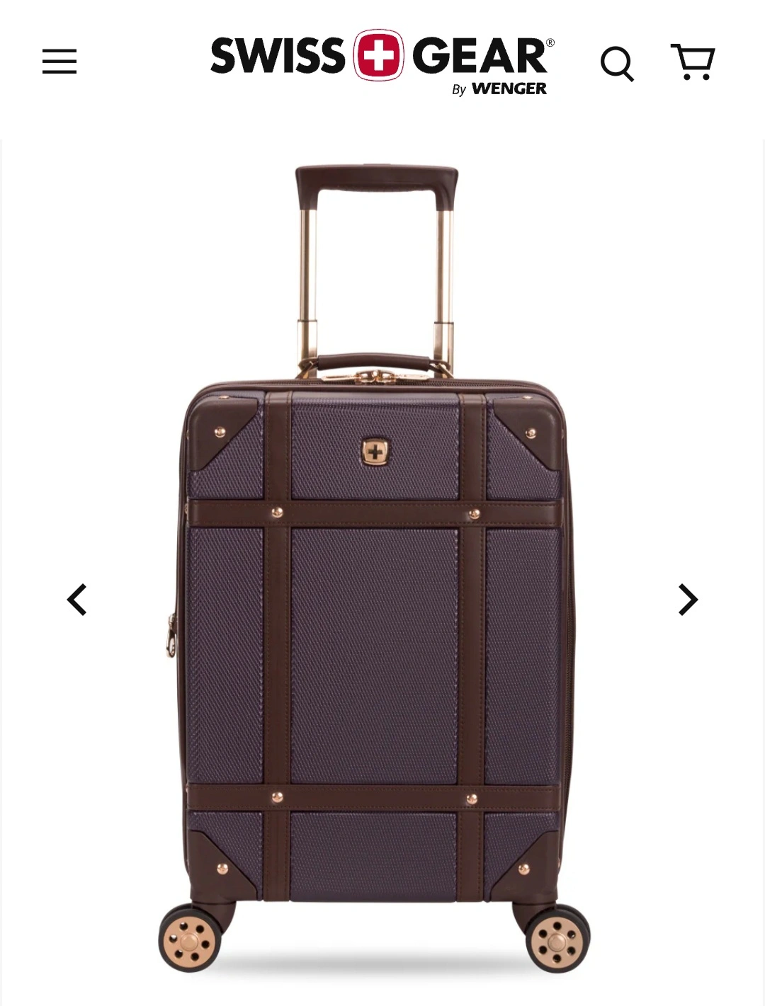 Offering a preowned purple swissgear trunk carryon. In great condition. Asking $75 message if interested PACKING DIMENSIONS 19 x 14 x 9.5 in PRODUCT DIMENSIONS 22.25 x 14.5 x 9.5 in 7.4 lbs A retro case embellished with matching rose gold hardware and chocolate leather stripes, let this matchless trunk upgrade your travel experience. The SWISSGEAR 7739 19" Trunk Expandable Carry-On Spinner Luggage splits into a functional abode to accommodate your must-haves. Featuring elastic tie-down clothing straps to ensure stable transportation of your clothes, it also entails a side packing pocket, two mesh elastic pockets, and a large zippered packing compartment. Separate your wet items inside the integrated zippered plastic pocket and utilize its expansive compartment for additional packing space. Bolstered by eight sleek spinner wheels, its ABS construct can brace hard impacts while its aluminum locking, push-button lift handle is exceptionally durable enough to outlast perpetual use. Grab its supple reinforced grab handle and journey toward your next destination with this vintage luggage setting your current pace.