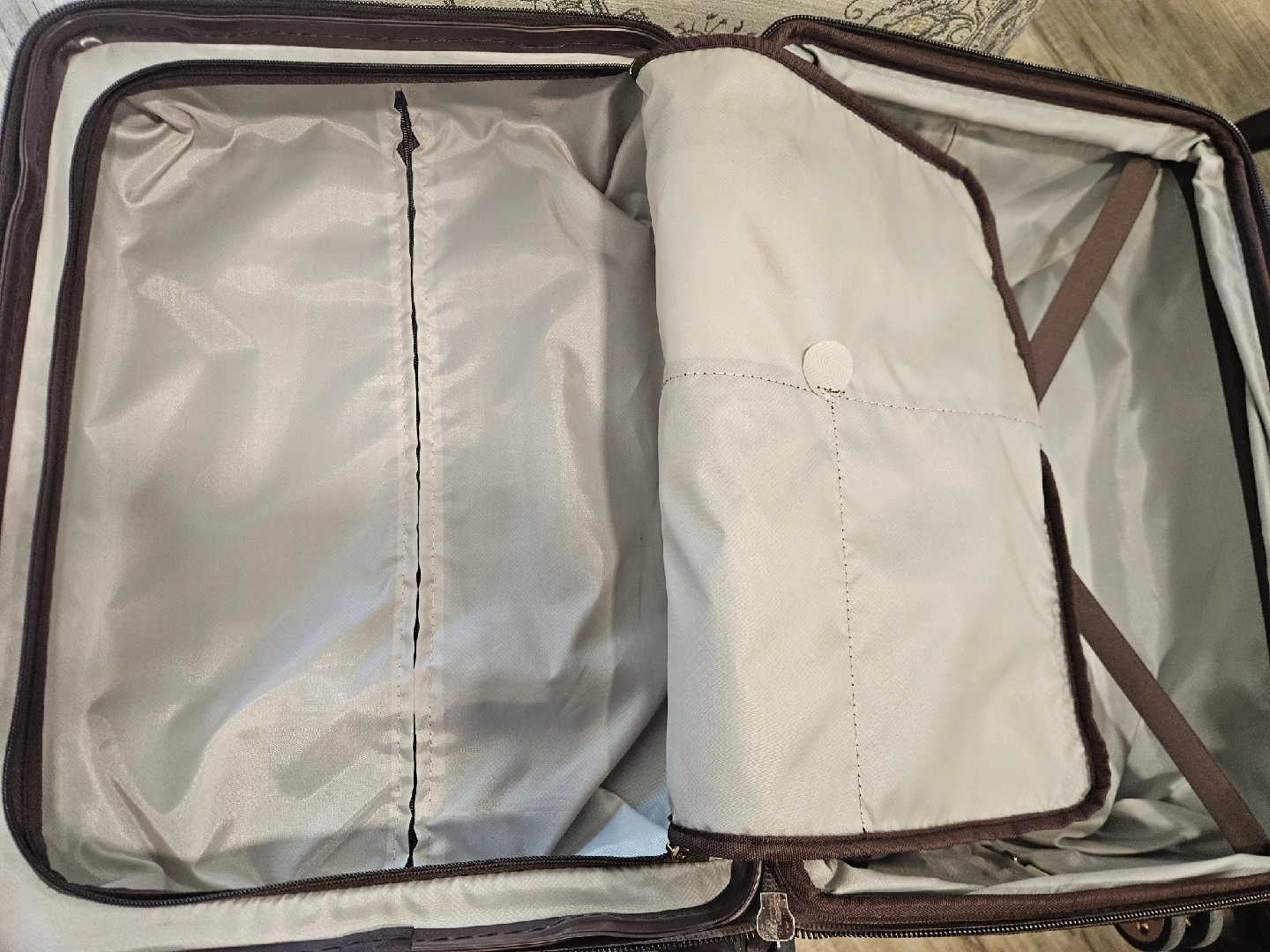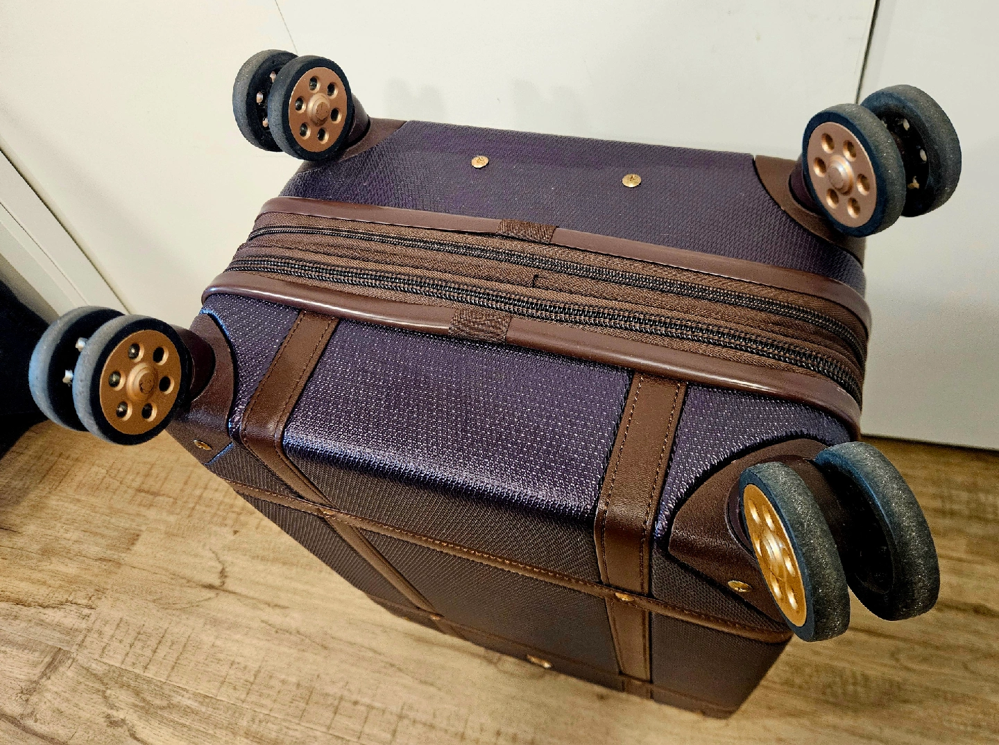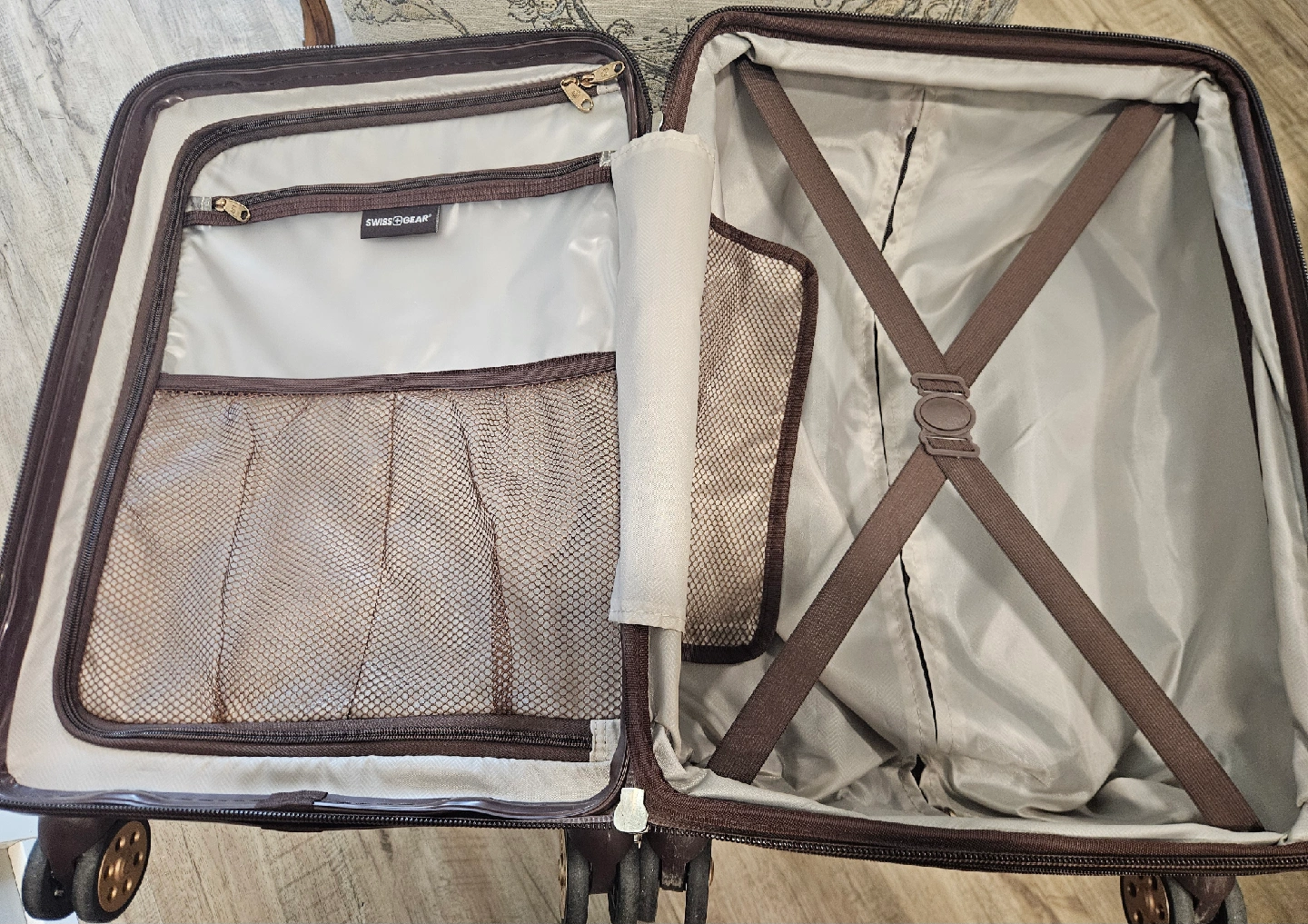 Offering a preowned purple swissgear trunk carryon. In great condition. Asking $75 message if interested PACKING DIMENSIONS 19 x 14 x 9.5 in PRODUCT DIMENSIONS 22.25 x 14.5 x 9.5 in 7.4 lbs A retro case embellished with matching rose gold hardware and chocolate leather stripes, let this matchless trunk upgrade your travel experience. The SWISSGEAR 7739 19" Trunk Expandable Carry-On Spinner Luggage splits into a functional abode to accommodate your must-haves. Featuring elastic tie-down clothing straps to ensure stable transportation of your clothes, it also entails a side packing pocket, two mesh elastic pockets, and a large zippered packing compartment. Separate your wet items inside the integrated zippered plastic pocket and utilize its expansive compartment for additional packing space. Bolstered by eight sleek spinner wheels, its ABS construct can brace hard impacts while its aluminum locking, push-button lift handle is exceptionally durable enough to outlast perpetual use. Grab its supple reinforced grab handle and journey toward your next destination with this vintage luggage setting your current pace.