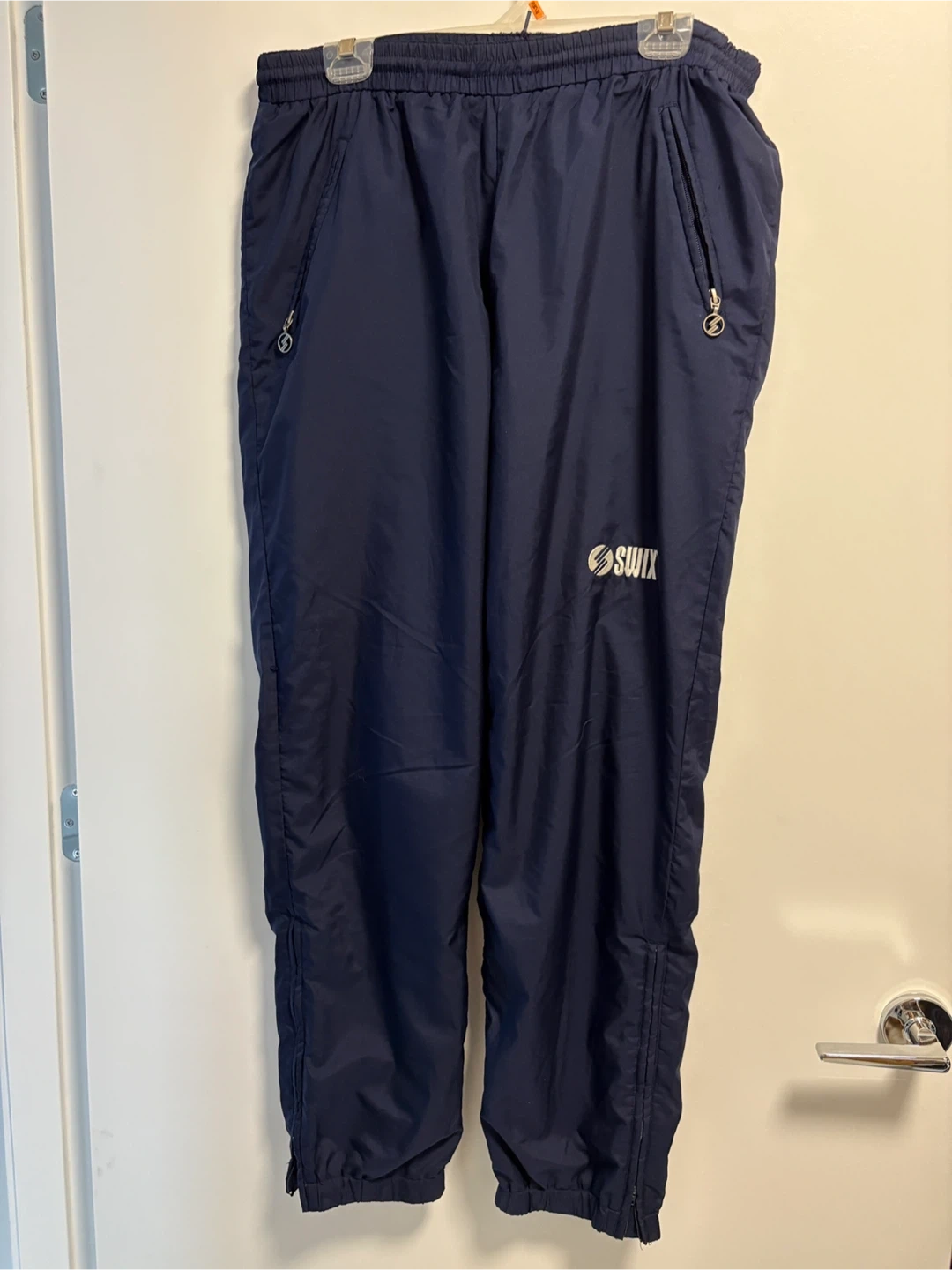 Selling a pair of Swix training pants in navy blue! They're a size large and made of 100% polyester. Great for workouts or just lounging around!