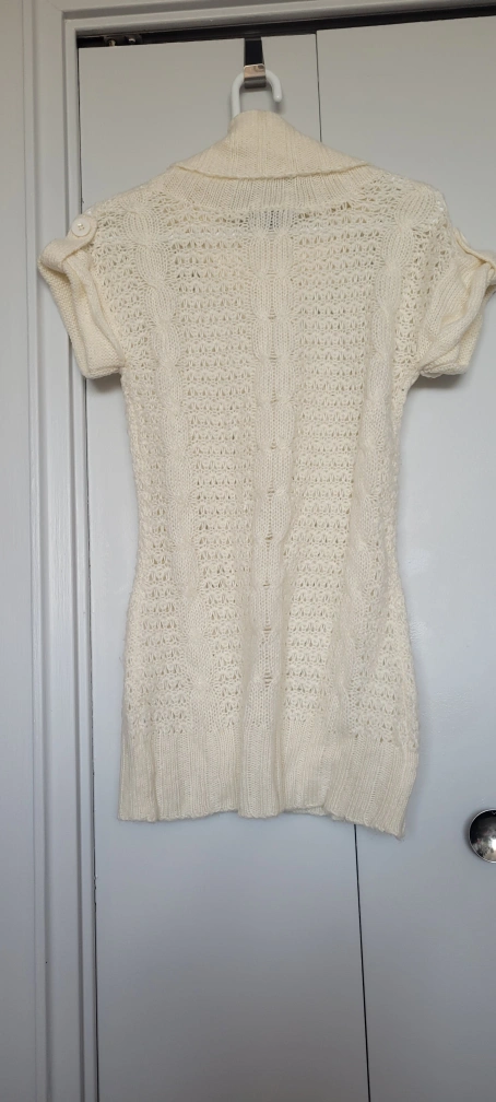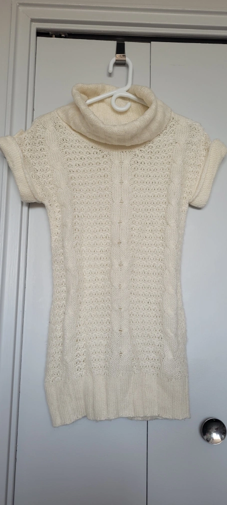 A cute cream knit tunic by SWS! It's a size small. I usually wear a size XS. Reason for selling: I bought it off Karrot but I'm not good enough to style it. Coming from a clean smoke-free, pest-free, pet-free home. Available to meet around Bathurst & Sheppard, Vaughan Mills or around Finch & Yonge. Cash Only!!