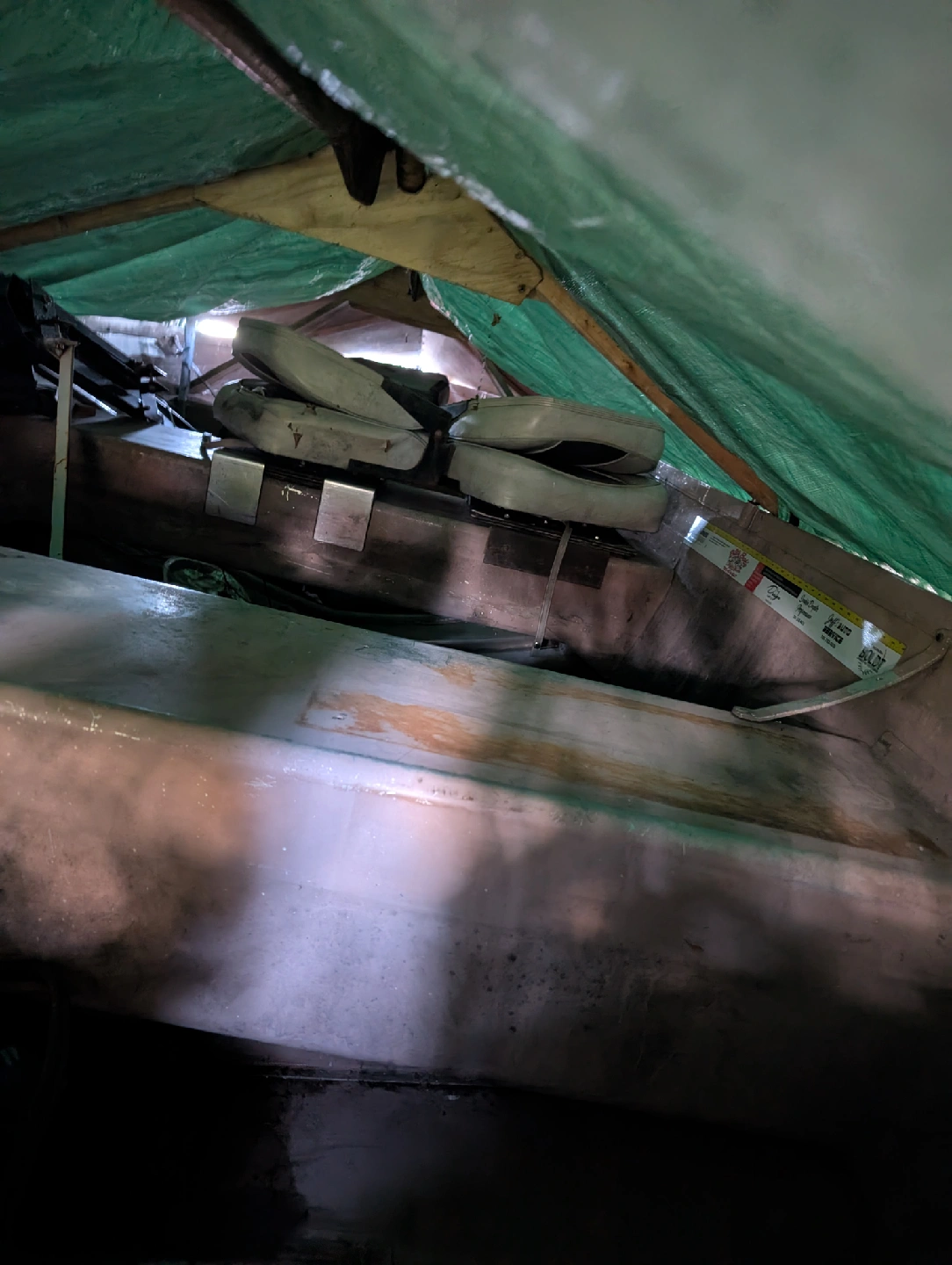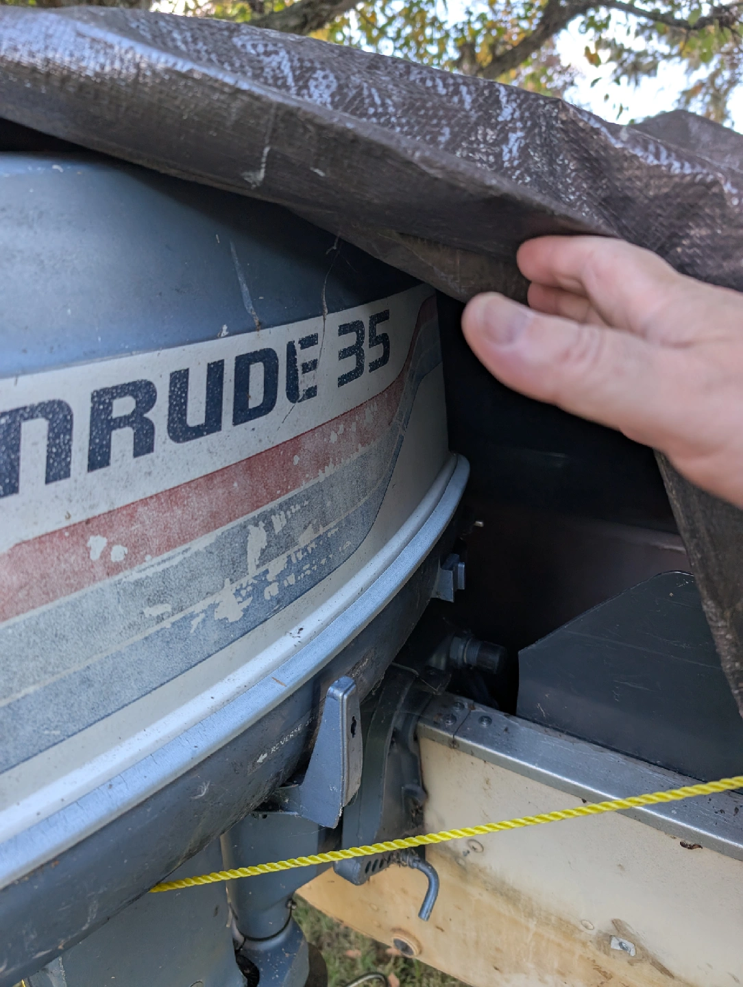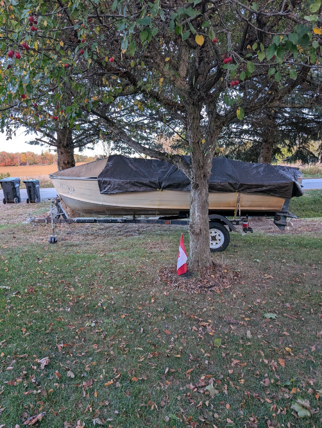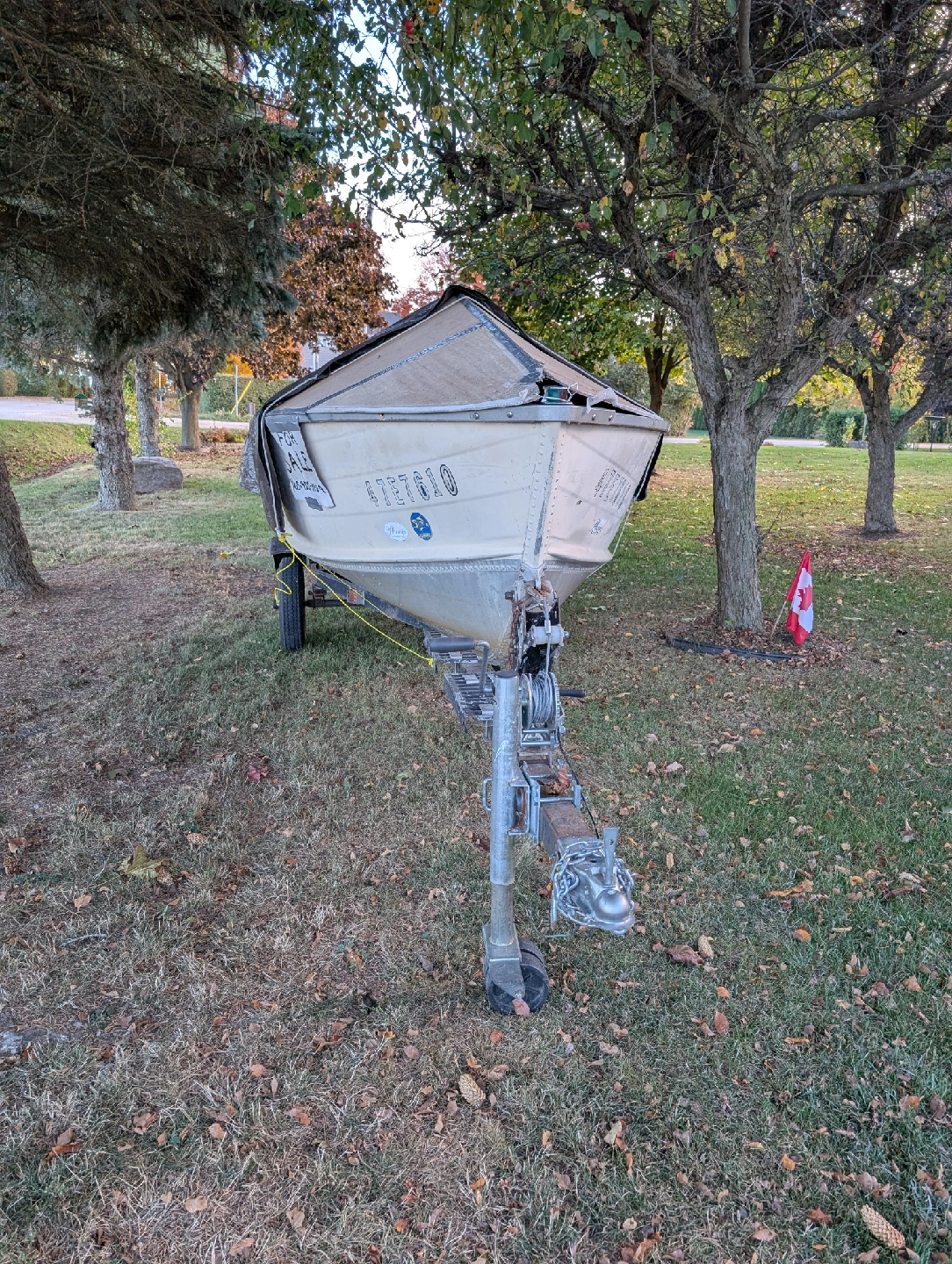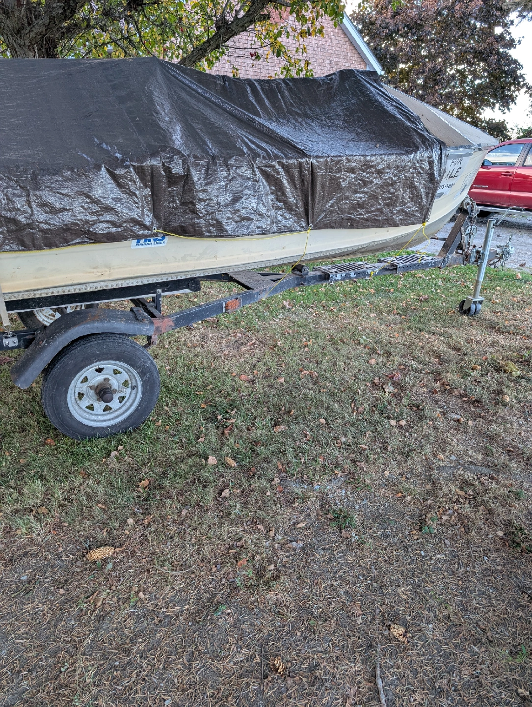 great condition, everything works as intended. 35 horse Evinrude and trolling motor. very deep and wide. great fishing or hunting boat.