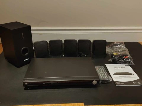 Take your movie nights to the next level with this complete DVD home theater system, designed for immersive sound and crystal-clear visuals. Features: DVD Player with HDMI Output – Enjoy HD video quality for a cinematic experience. 5.1 Surround Sound – Includes five satellite speakers and a powerful subwoofer for full surround sound. ️ Multiple Audio/Video Inputs – Connect additional devices for versatile media playback. Remote Control – Easily control volume, playback, and settings from anywhere in the room. Condition: New in Box – All components in great condition, ready to set up. For more information or pickup details, feel free to message me directly here or contact me at 289-788-8085.