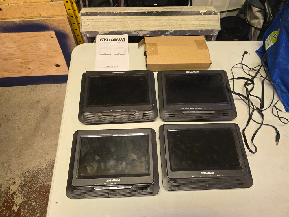 Selling 2 sets of Sylvania portable DVD players! They look to be in good condition and come with what you see in the photos. Perfect for road trips or keeping the kids entertained on the go!