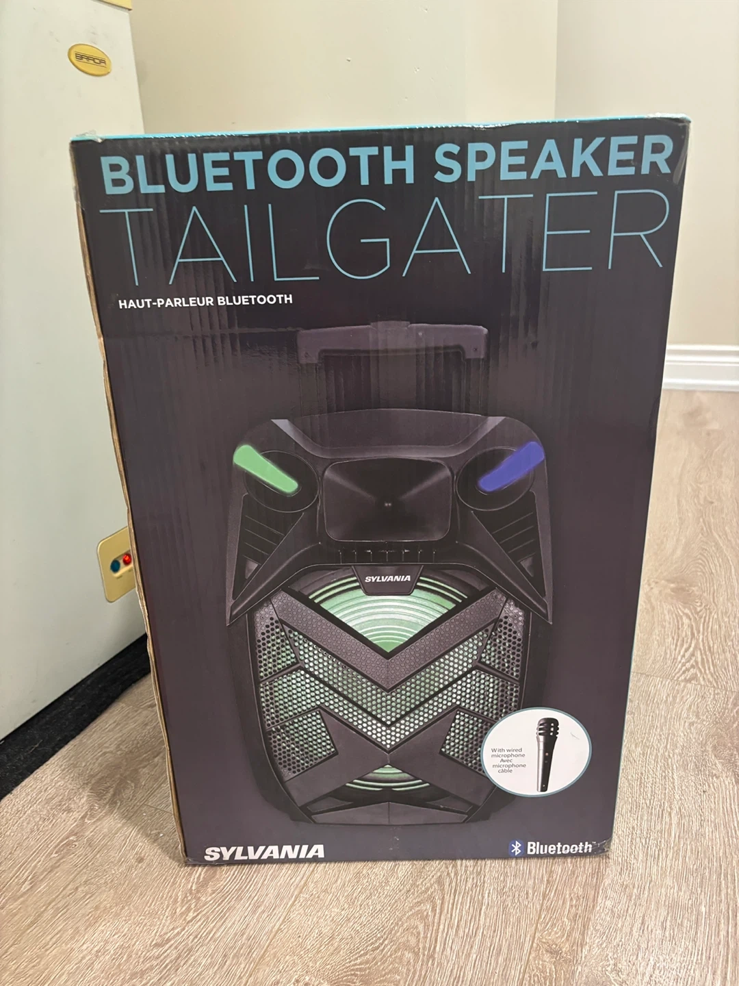 Selling a brand new Sylvania Tailgater Bluetooth speaker! It's still in its original box and comes with a wired microphone and cable. Perfect for parties or any outdoor event. Get ready to crank up the tunes!