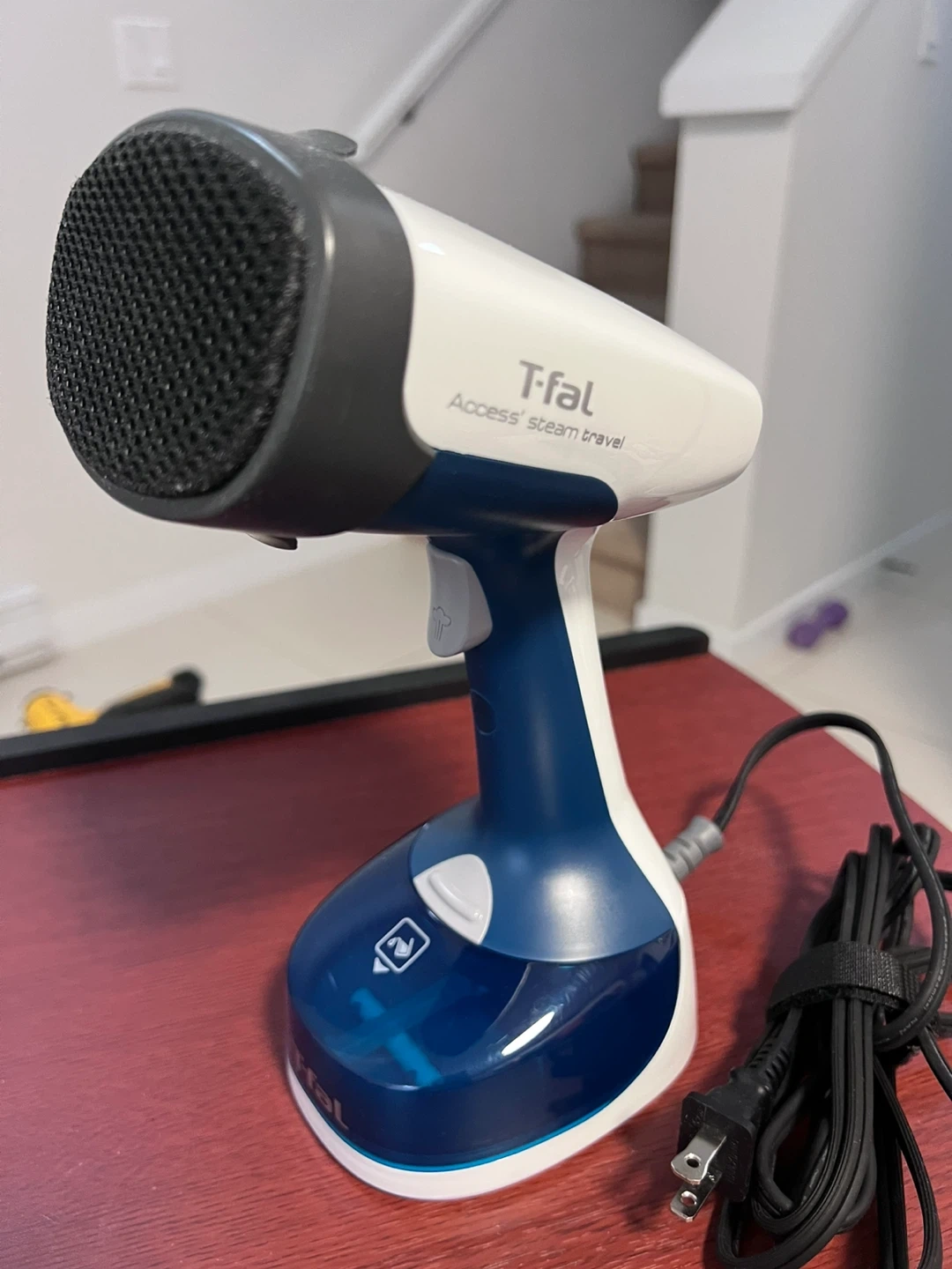 . It's in great condition and perfect for quick touch-ups at home or on the go. It's lightweight and portable, making it easy to pack for trips. This handy steamer will help keep your clothes looking their best!