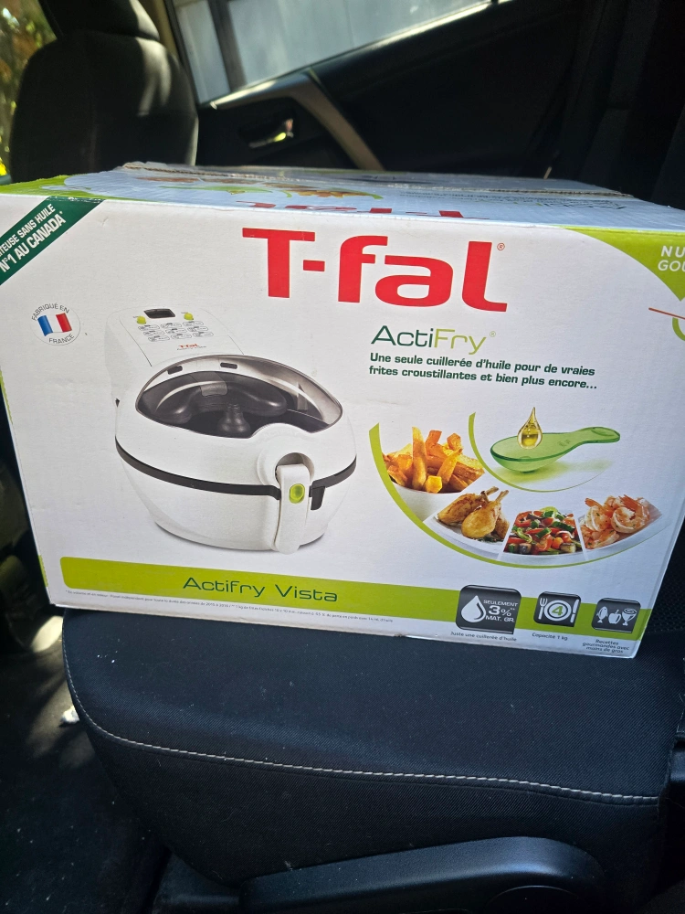Selling a T-fal ActiFry Vista! It uses only one spoon of oil for crispy fries and much more. It's brand new box and ready for a new home.