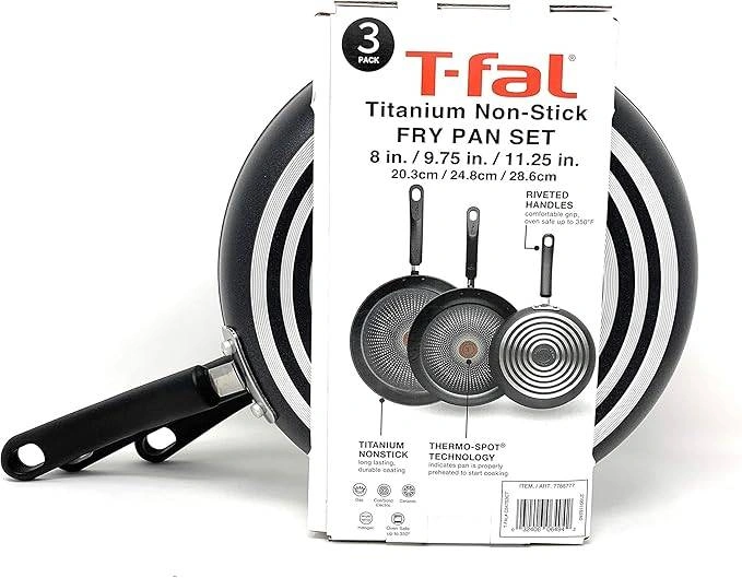 T-Fal C547S3CT Durable Titanium Nonstick Thermo-Spot Heat Indicator Fry Pan Cookware Set, 3-Piece, 8"-20.3cm,9.75"-24.8cm and 11.25"-28.6cm, Fry Pan Set (Black) New in Box Walmart Retail price: $34.97+ $25 I offer 7 days free return for all of my items - No question asked I'm liquidating my store. Please check my other listing for amazing deals. Feel free to send offers for bulk items. ---------------------------------------- Please check out my listings for more items. -Location: Northfield Dr and Davenport Rd (2 Minutes from Conestoga Mall) - (N2K 3P4) -Door Pick-up or Porch Pick-up -Payment: Cash PayPal E-transfer - Shipping and delivery available for extra fee. N2K Show us low price and we will beat this price Feel free in contacting me anytime should you have any questions or concerns. Thanks for your interest and support! About this item: ------------------------------------- https://www.walmart.ca/en/ip/T-Fal-C547S3CT-Durable-Titanium-Nonstick-Thermo-Spot-Heat-Indicator-Fry-Pan-Cookware-Set-3-Piece-8-20-3cm-9-75-24-8cm-11-25-28-6cm-Set-Black/3WNLOTZLDX9H