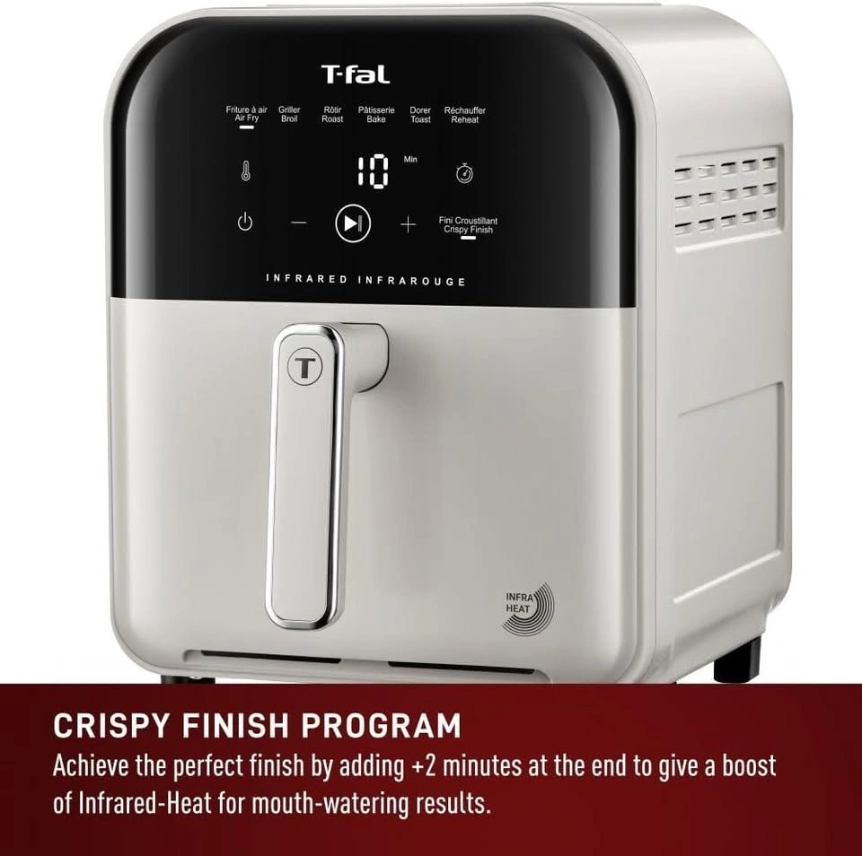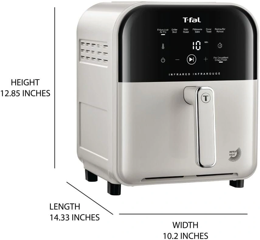 BRAND NEW IN BOX - PRICE IS FIRM See listing here: https://www.amazon.ca/dp/B0FB64FKRV Experience precise, direct heat penetration every time for faster, crispier and juicier results. No pre-heating needed! The Carbon Fiber heats up to 60% faster.* Exclusive 360° airflow ensures even and crispy results without the need for shaking** locking in juices and enhancing flavors. Achieve the perfect finish by adding +2 minutes at the end to give a boost of Infrared-Heat for mouth-watering results. Includes Air Fry, Broil, Roast, Bake, Reheat, Toast, and T-fal’s exclusive “Crispy Finish” for a perfect touch. Cook everything to perfection with temperatures from 160°F/70°C to 450°F/230°C. Perfect for full meals or serving 2-3 people, making family dinners a breeze.