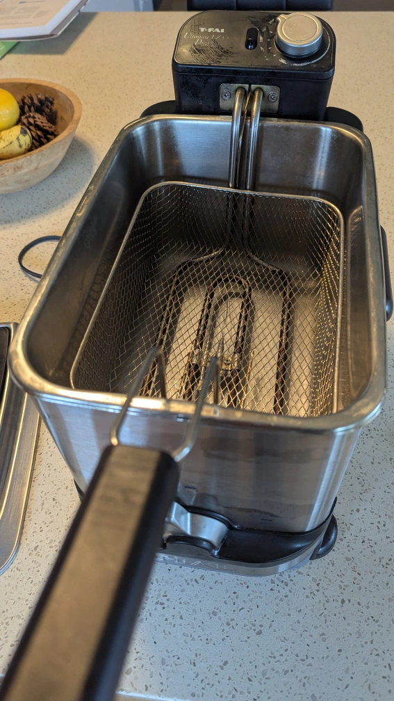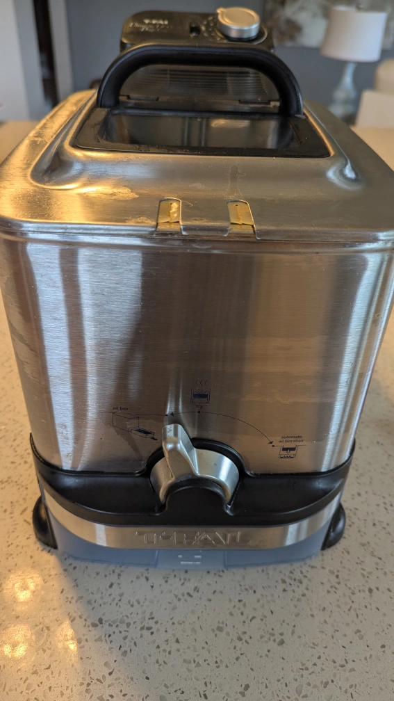 Selling a T-fal Ultimate EZ Clean deep fryer. It features an automatic oil filtration system for easy cleaning and maintenance. In good condition. Empty and clean. Great for making crispy fries or other fried treats at home!