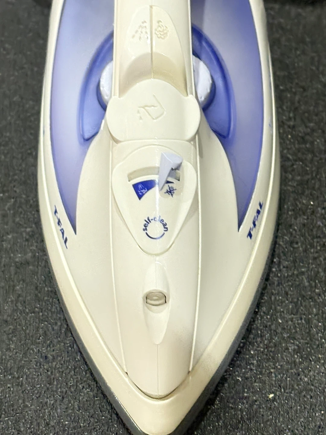 Selling a T-Fal Ultraglide steam iron in white and blue. It's in great shape and ready to help you get those wrinkles out! This iron features a self-clean function for easy maintenance