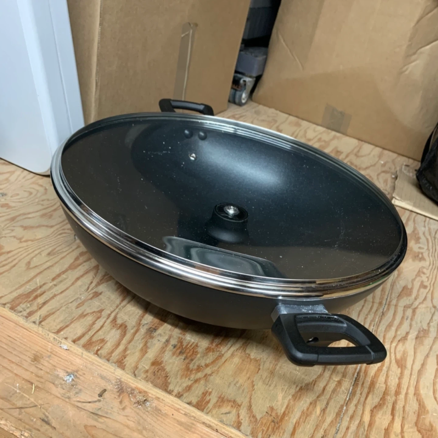 I don’t take cash Interac e-transfers ONLY LOCATION: 1688 4Th Ave W Vancouver BC V6J 0B7 Canada SPECIFICATIONS: https://www.canadiantire.ca/en/pdp/t-fal-jumbo-wok-pan-with-glass-lid-non-stick-dishwasher-oven-safe-36cm-1425766p.html?rq=jumbo+wok