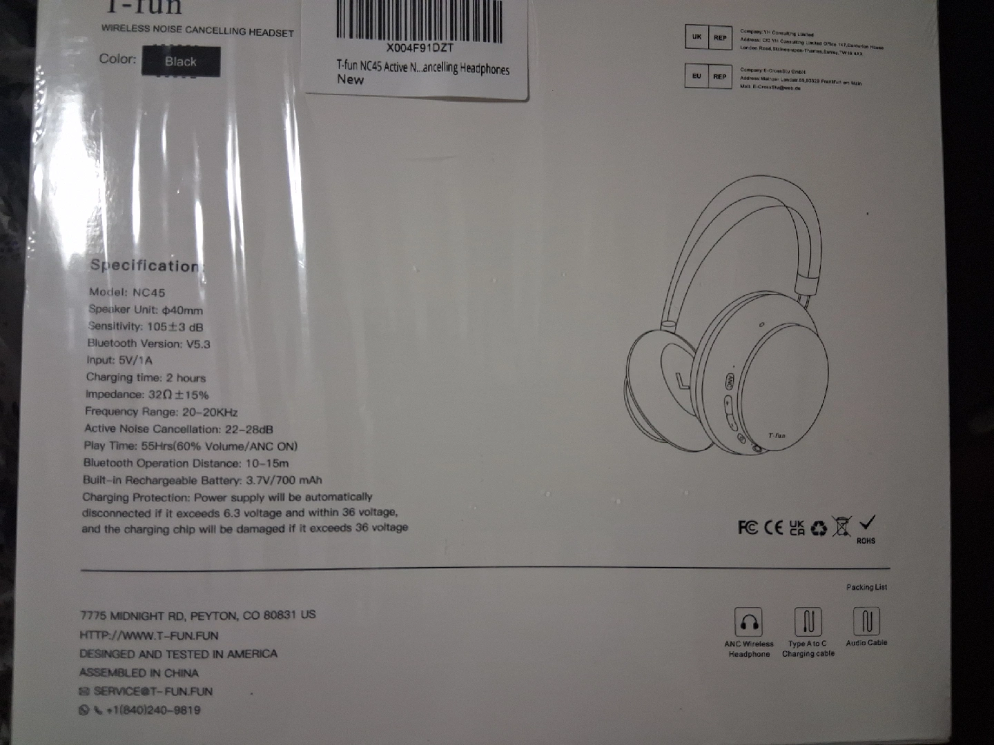 Selling a brand new pair of T-fun NC45 active noise cancelling headphones! They come with active noise cancellation, low latency mode, and a custom EQ app. The box is included!