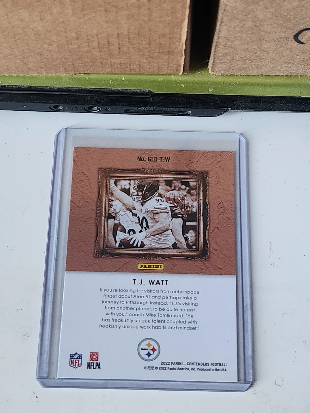 Selling a T.J. Watt Contenders football card. The card features T.J. Watt of the Pittsburgh Steelers. It's a great collectible for any football fan