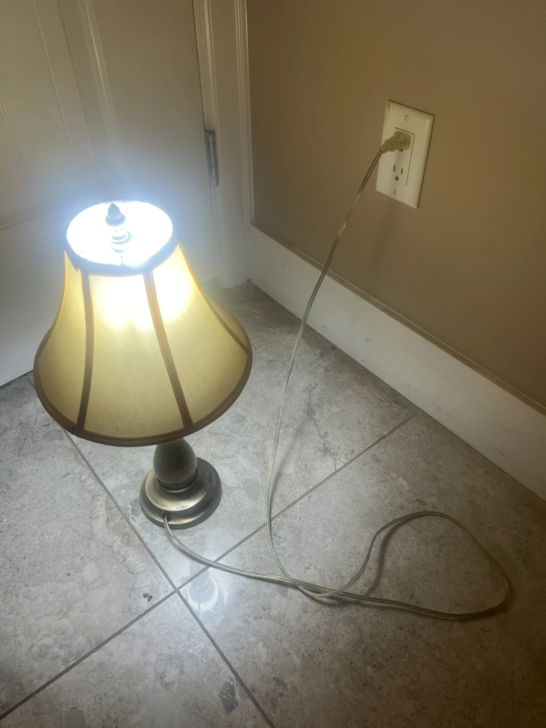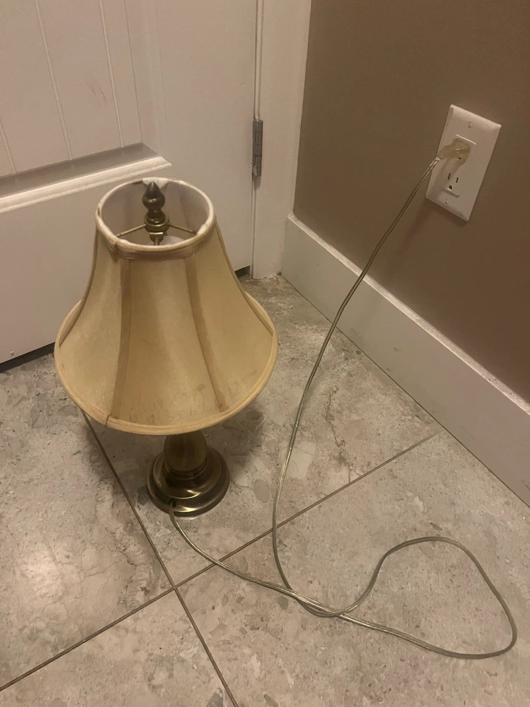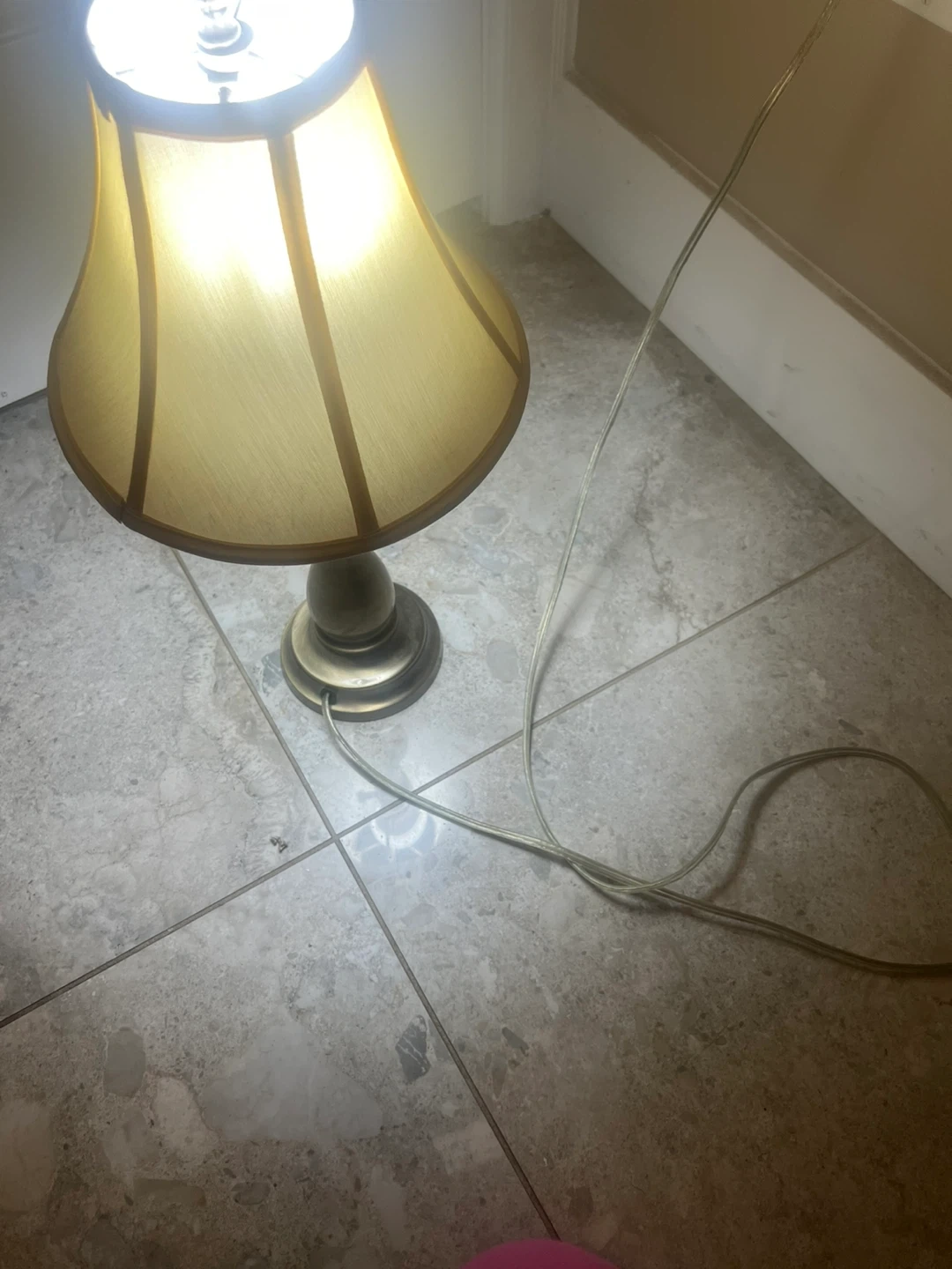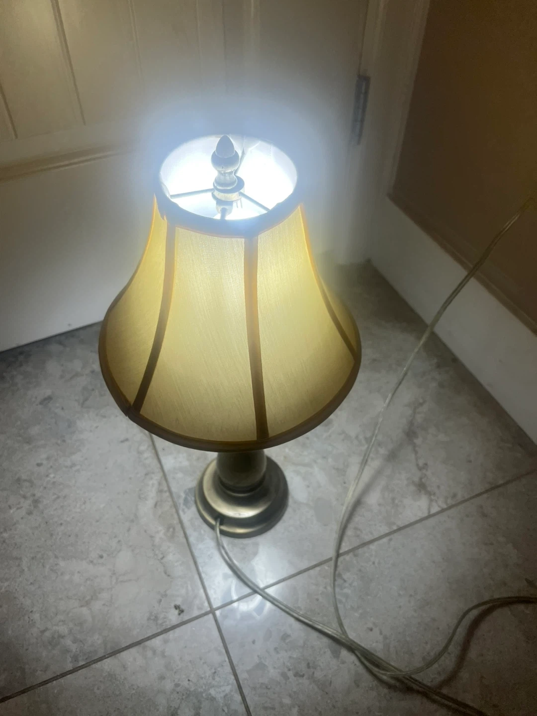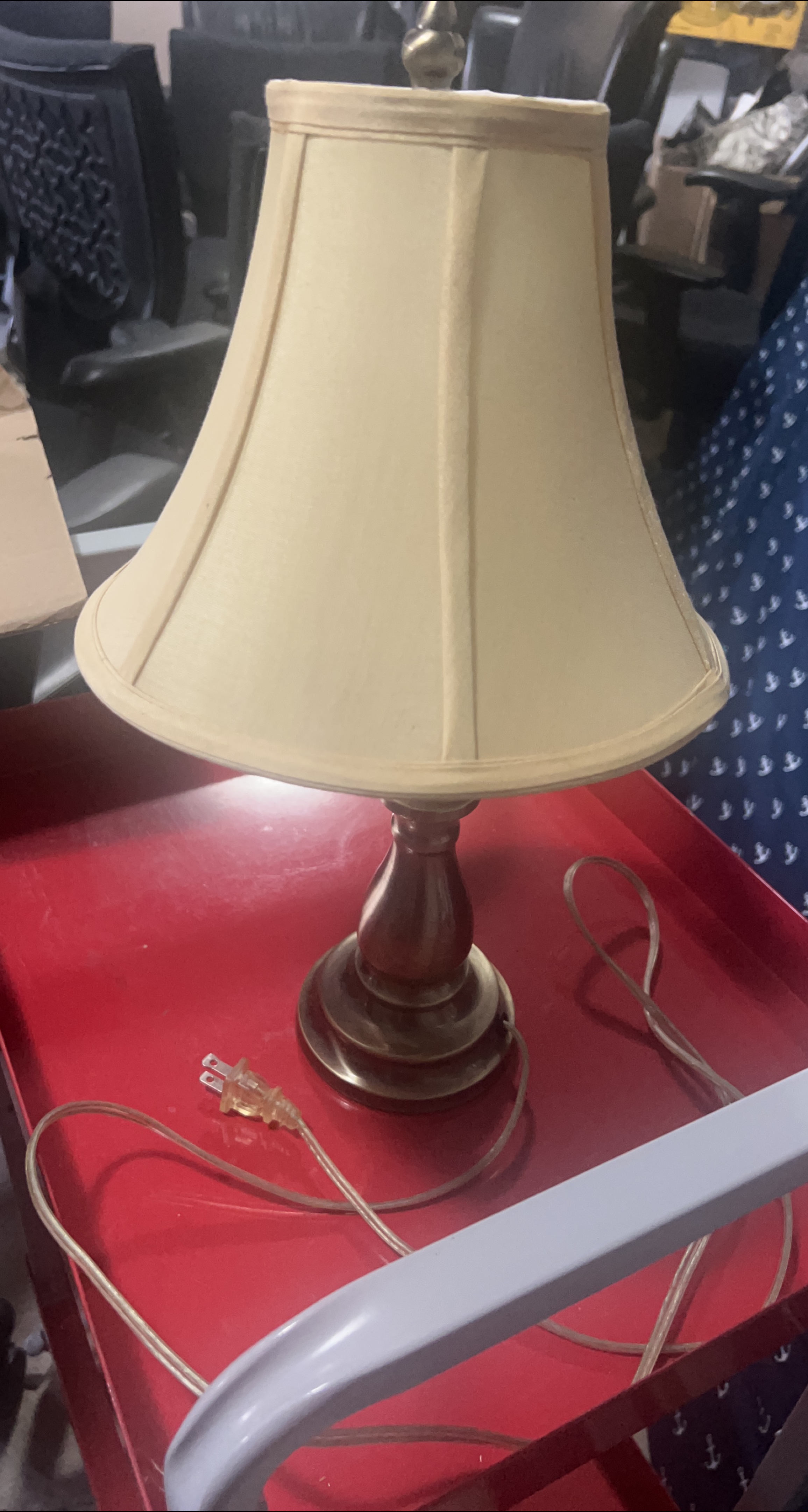 Selling a table lamp with a cream-coloured shade. It has a wooden base and a simple, elegant design. Perfect for adding a warm touch to any room in your home