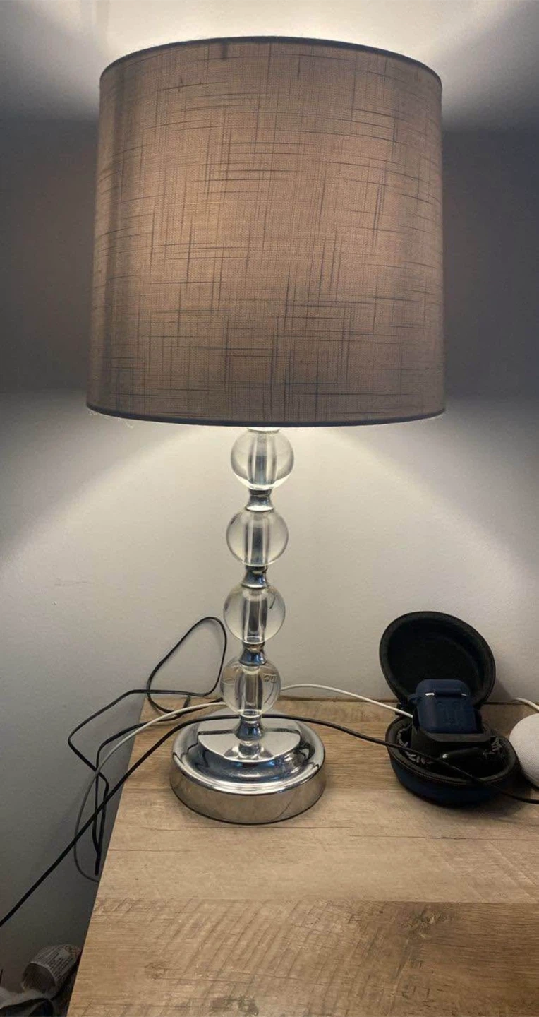 Selling a stylish table lamp! It features a grey fabric shade and a unique glass ball base. Perfect for adding a touch of elegance to any room. Beautiful side table lamps. Set of 2. It is in really good condition since it was used only for a month and now selling it as I’m moving back to my home country.